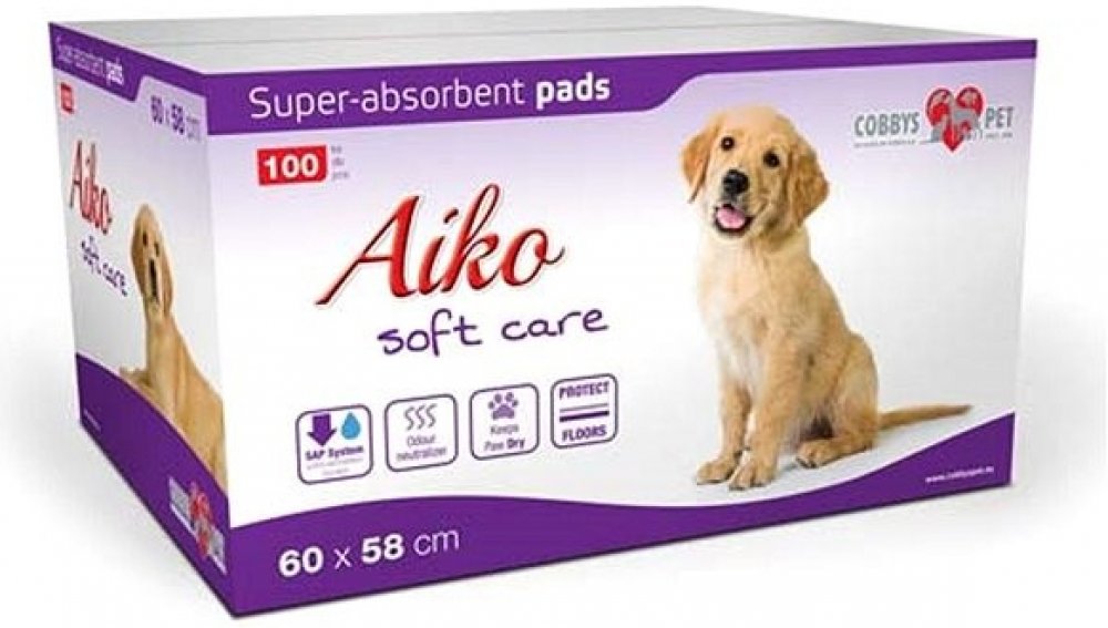 Podložka absorb. pro psy Aiko Soft Care 60x58cm 100ks - Podložka absorb. pro psy Aiko Soft Care 60x58cm 100ks - AIKO Soft Care - hygienická podložka pro štěňata, starší psy trpící inkontinencí nebo pro psy v rekonvalescenci. Super absorpční vlastnosti a snadné použití 5- vrstvé podložky. Žádné kapky - žádné úniky - chrání vaše podlahy - regulace zápachu - rychlé schnutí. Používejte absorbující str...