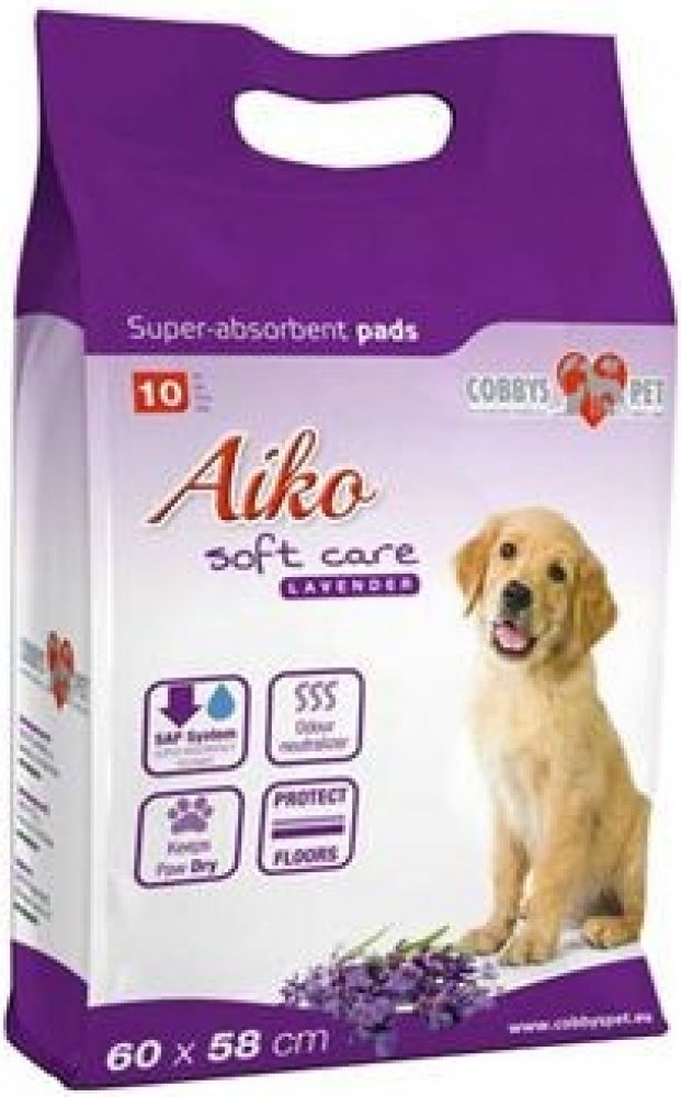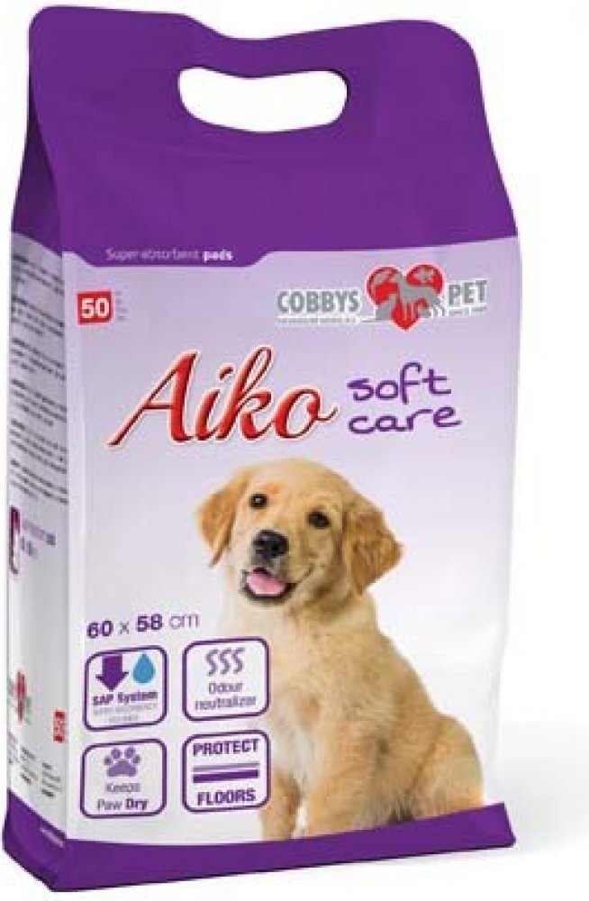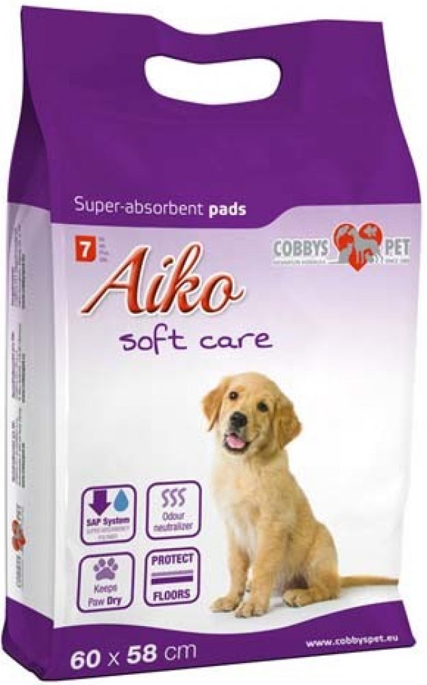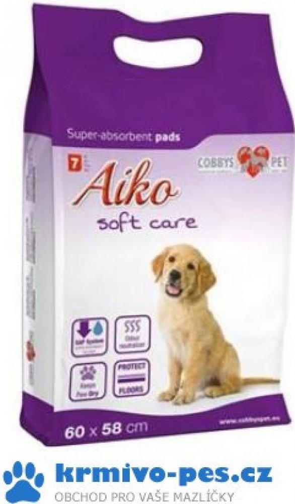 Podložka absorbční pro psy Aiko Soft Care 60x58cm 7ks - AIKO Soft Care - hygienická podložka pro štěňata, starší psy trpící inkontinencí nebo pro psy v rekonvalescenci. - Super absorpční vlastnosti a snadné použití 5- vrstvé podložky. Žádné kapky - žádné úniky - chrání vaše podlahy - regulace zápachu - rychlé schnutí. Používejte absorbující stranu podložky jako vrchní. Nedopusťte, aby váš pes kous...
