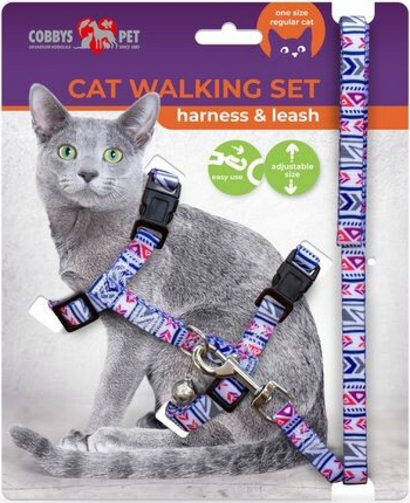 Připravte svou kočičku na bezpečné a stylové objevování okolí s COBBYS PET postrojem a vodítkem v atraktivním vzorovaném designu!