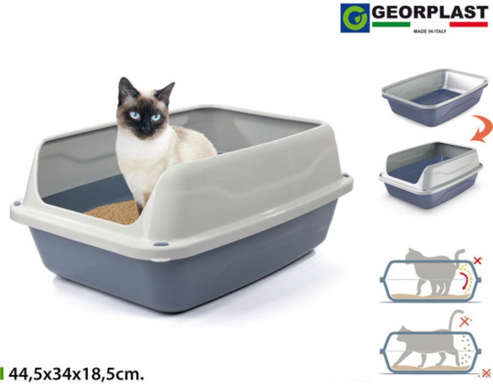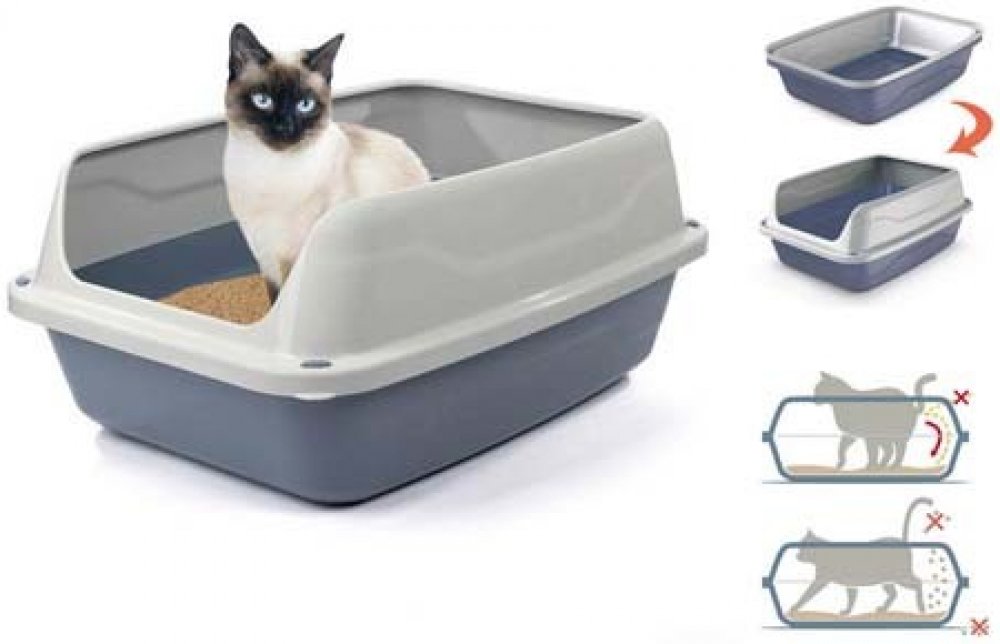 Otevřené wc pro kočky s vysokým okrajem z kvalitního odolného plastu.