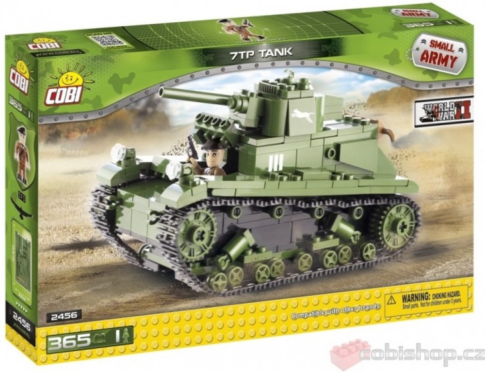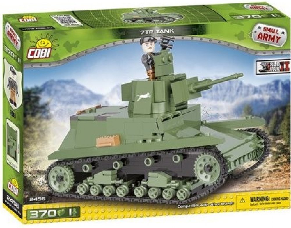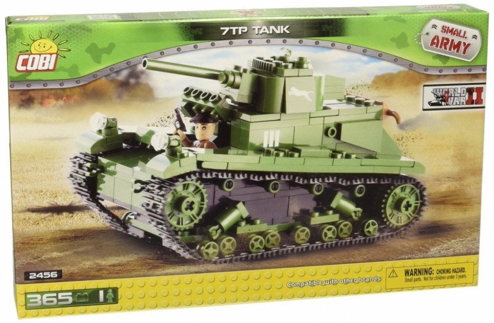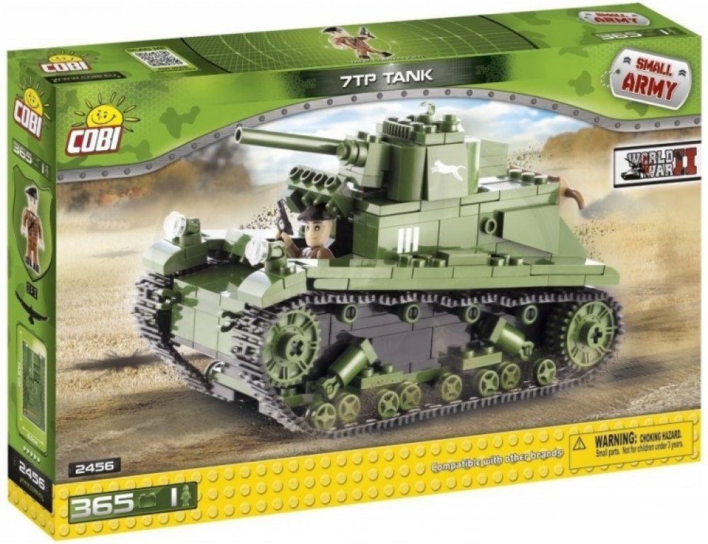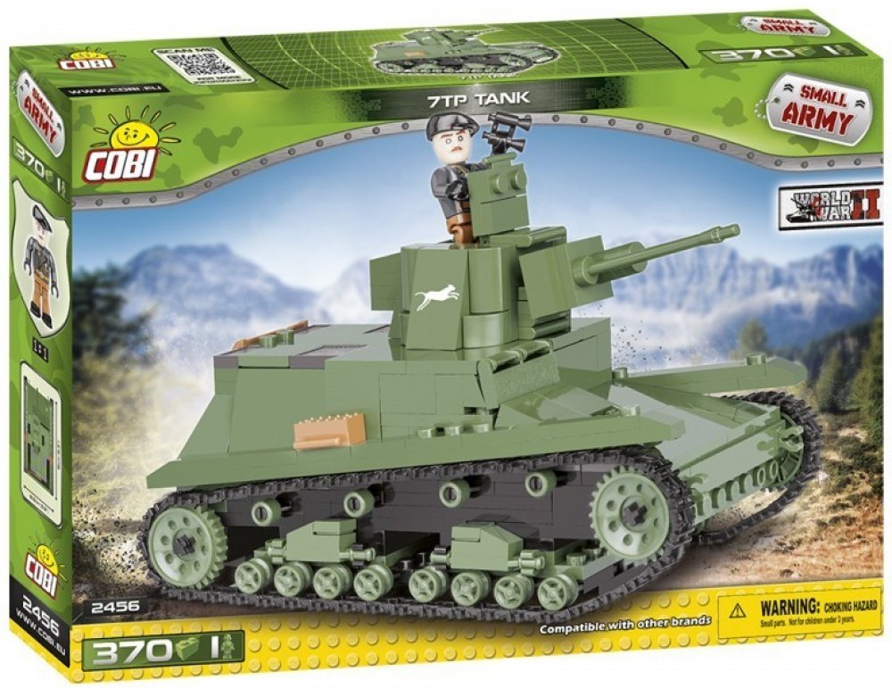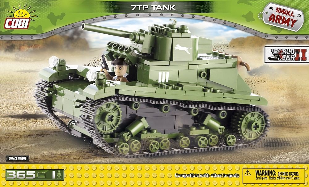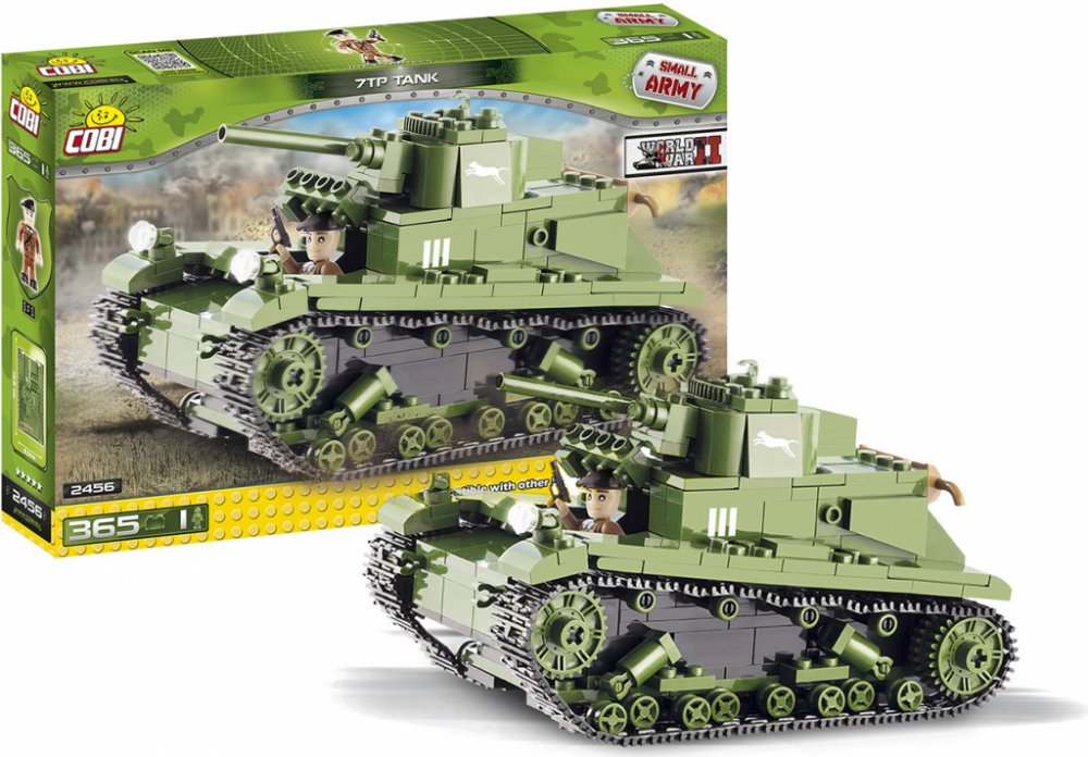 Model tanku 7TP lze sestavit ze stavebnice Cobi. Toto balení stavebnice obsahuje 370 ks dílků a jednou figurkou.Tank 7TP měla ve výzbroji polská armáda v letech 1935-1939 a byl vyráběn dle britských tanků Vickers E Type A.Stavebnice Cobi je kompatibilní s mnoha stavebnicemi na evropském trhu a je vyrobena z velmi kvalitního plastu. Jednotlivé části stavebnice jsou velmi dobře propracovaná.