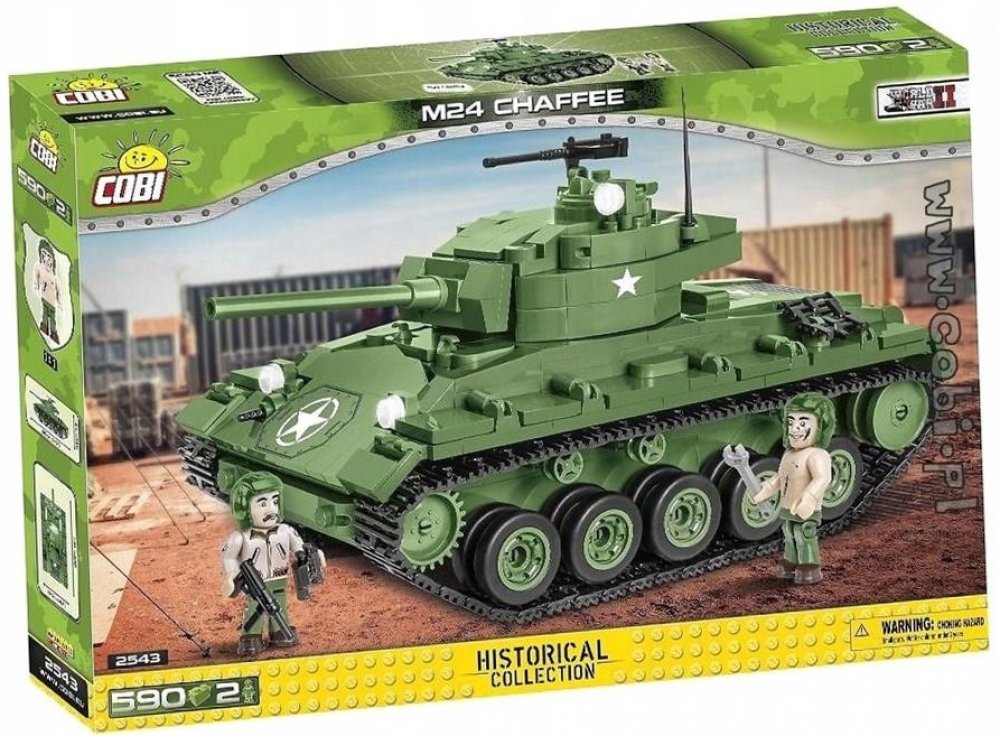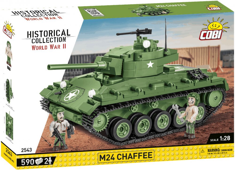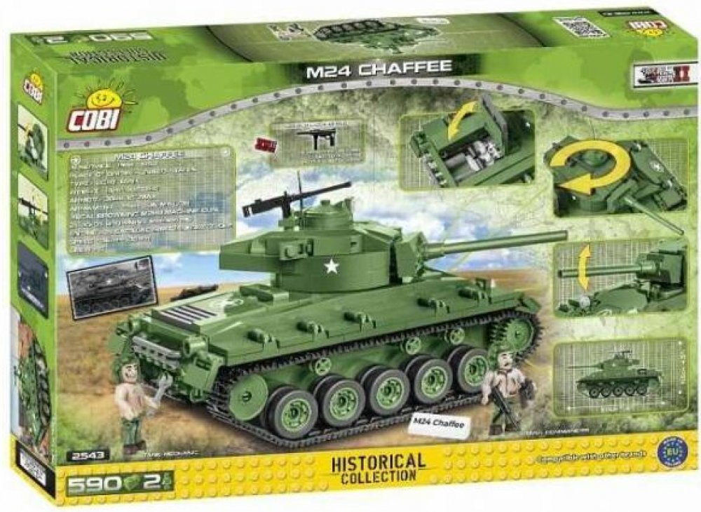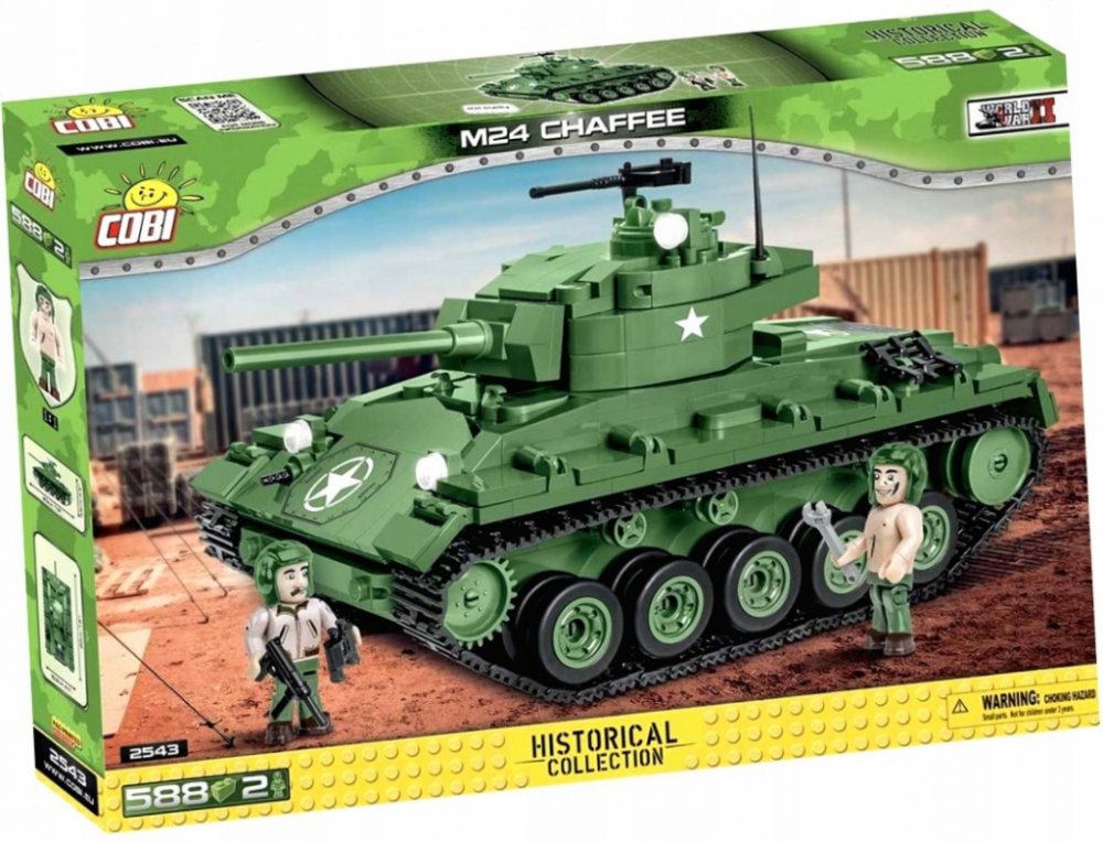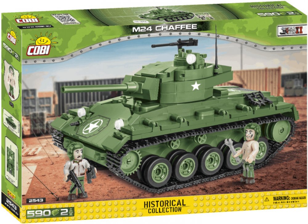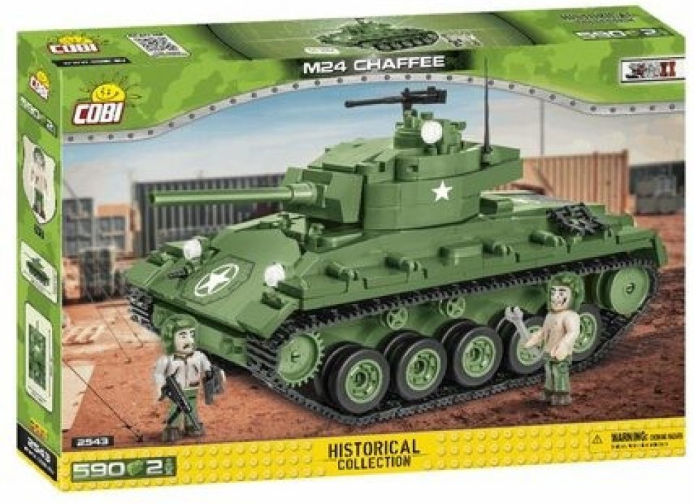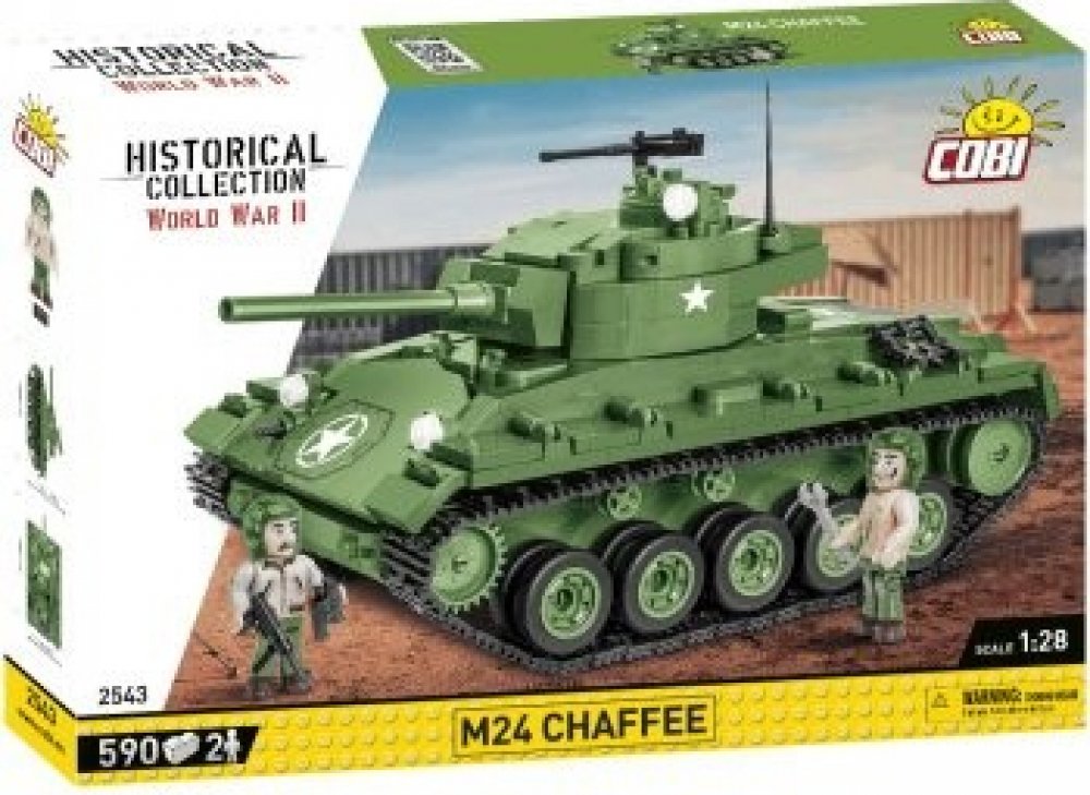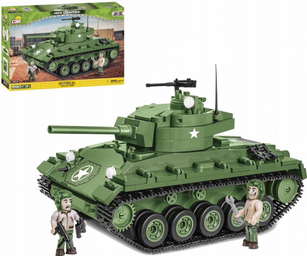 Z této sady 590 stavebních bloků COBI postavíte dokonale reprodukovaný model lehkého tanku M24 Chaffee. Model má funkční pásovou trakci, otočnou věž a pohyblivou hlaveň. Pod otevíracím servisním poklopem najdete atrapy dvou motorů. Na věži je otevírací poklop a kulomet. Na modelu najdete odolné potisky, které se neodírají ani při intenzivním hraní.