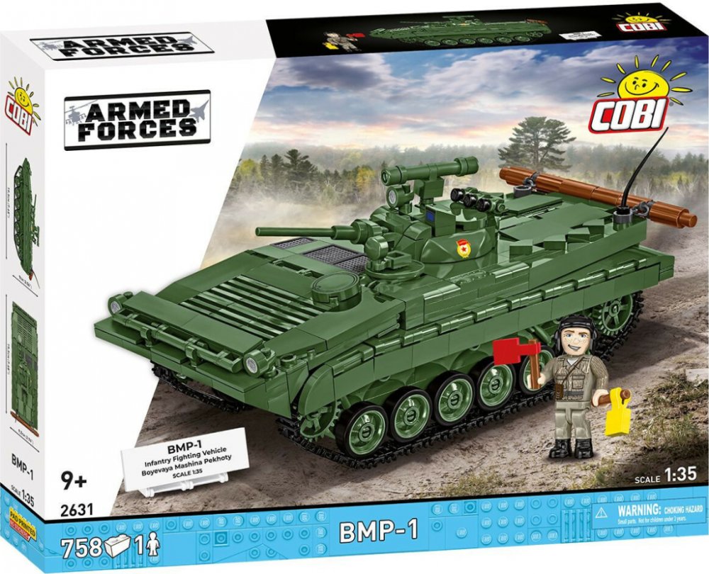 Stavebnice modelu bojového vozidla pěchoty BMP-1 z období Sovětského svazu. Sestavený model má otočnou věž s nastavitelným náměrem kanónu a otevírací pancéřované dveře prostoru pro posádku. Na zádi je upevněna vyprošťovací kláda. Pod krytem je uložen motor UDT-20. Pojezdová kola mají gumové bandáže tak, jak tomu bylo u skutečných vozidel. Stavebnice 2v1 obsahuje dvě sady potištěných kostek, a tak každý stavitel může model dokončit v sovětských barvách, nebo v barvách Německé demokratické republiky (DDR). Součástí balení je také figurka východoněmeckého vojáka s navigačními praporky a kostka s popisem.