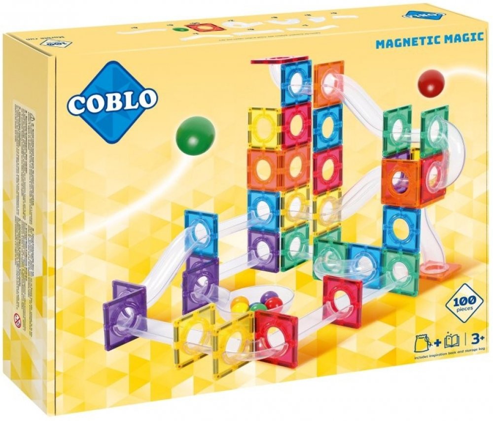 Postavte si vlastní kuličkovou dráhu z barevných magnetických komponent, které podněcují dětskou kreativitu a představivost. Kuličková dráha Coblo zajišťuje nekonečnou zábavu při stavění a především zábavné vzrušení, zda kulička dojede do cíle. Magnetické díly kuličkové dráhy Coblo mají uprostřed kulatý otvor, do kterého lze jednotlivé části dráhy pro kuličky zacvaknout. Kuličkovou dráhu lze také kombinovat se základními sadami Coblo, takže pak lze stavět ještě větší dráhy.
