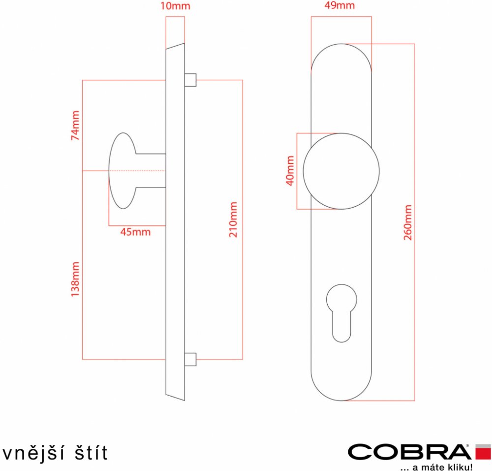 Štítové ochranné kování Cobra ELEGANT - otvor pro cylindrickou vložku.