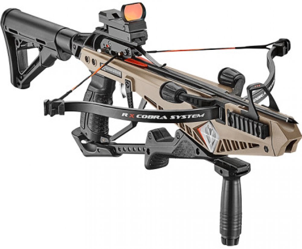 Dalekonosná kuše EK Archery Cobra R10 RX Stejně jako R9 se i RX velmi snadno upíná. Jednoduše ovládejte integrovanou spodní páku a zbraň je natažená. Díky snadné demontáži hlavních sestav (přední část, zadní část a lučiště) bez nástrojů je RX stejně přenosný jako R9. Volitelně dostupné přenosné pouzdro je ideální pro přepravu rozebraného RX na střelnici a jeho přípravu ke střelbě během několika sekund. OBSAH DODÁVKY: Kuše 130 liber 6 šípů 15" Přední úchop Zadní pažba Kolimátor (zaměřovač) s červeným bodem Vosk na tětivu Ramenní popruh Důležitá poznámka: lov lukem a kuší je v České republice zakázán!