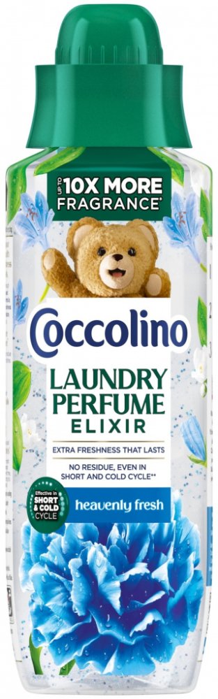 Zažijte až 10x voňavější zážitek s Coccolino parfémem na praní. Coccolino parfém na praní, Heavenly Fresh, pohltí vaše prádlo do vůní pačuli, levandule a eukalyptu.