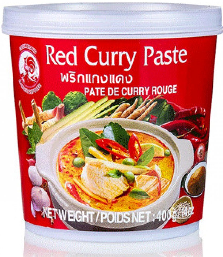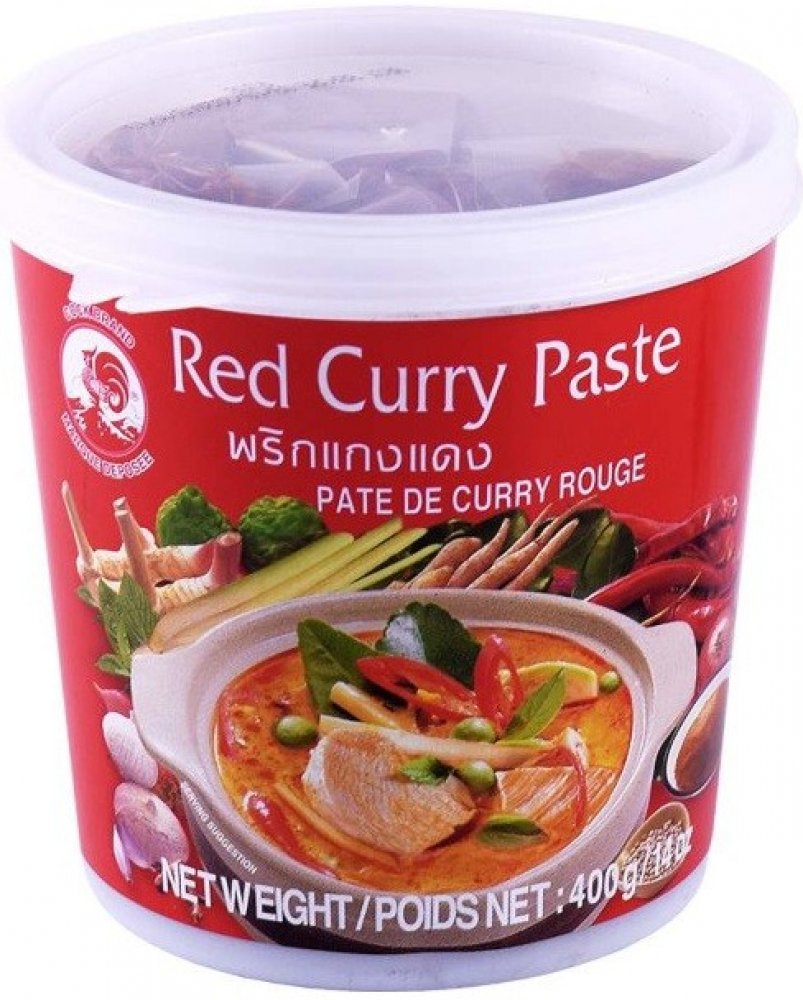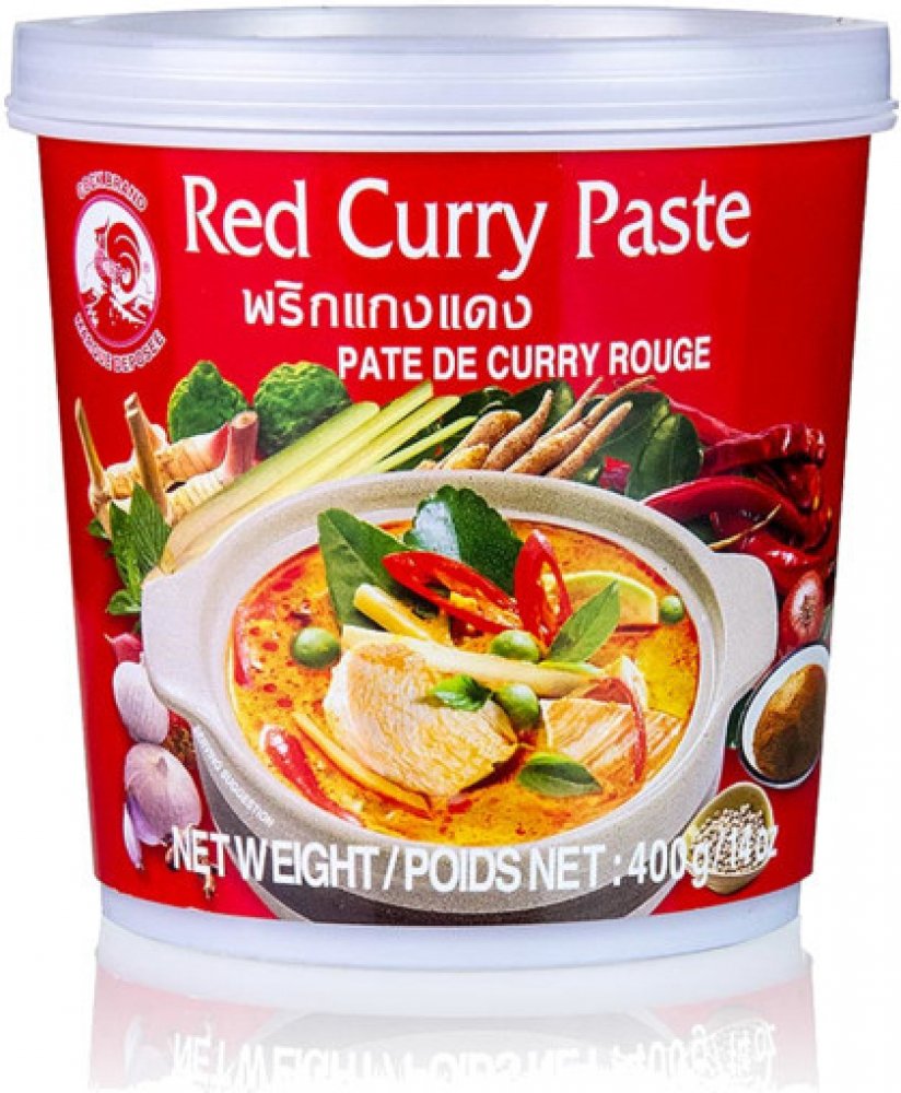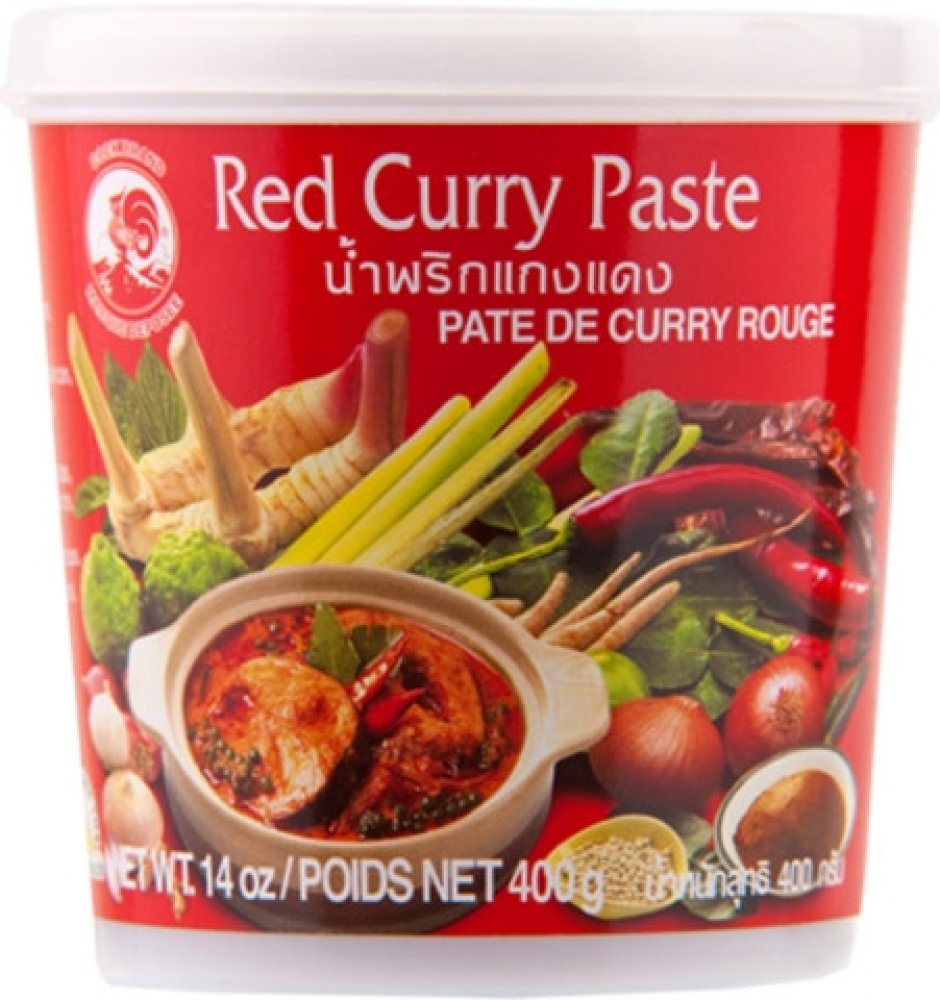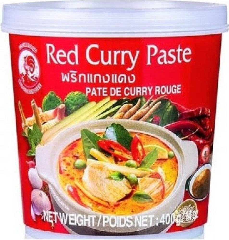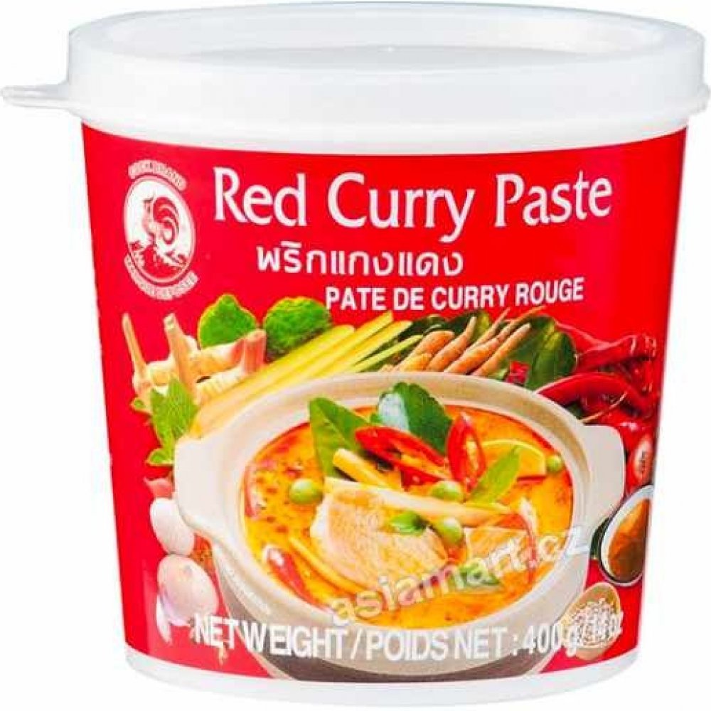 Thajská červená kari pasta Cock je zárukou autentické nezaměnitelné chuti typické pro asijskou a zejména thajskou kuchyni. Červená kari pasta je vhodná k přípravě omáček, polévek, k masu, zelenině, nudlím apod.