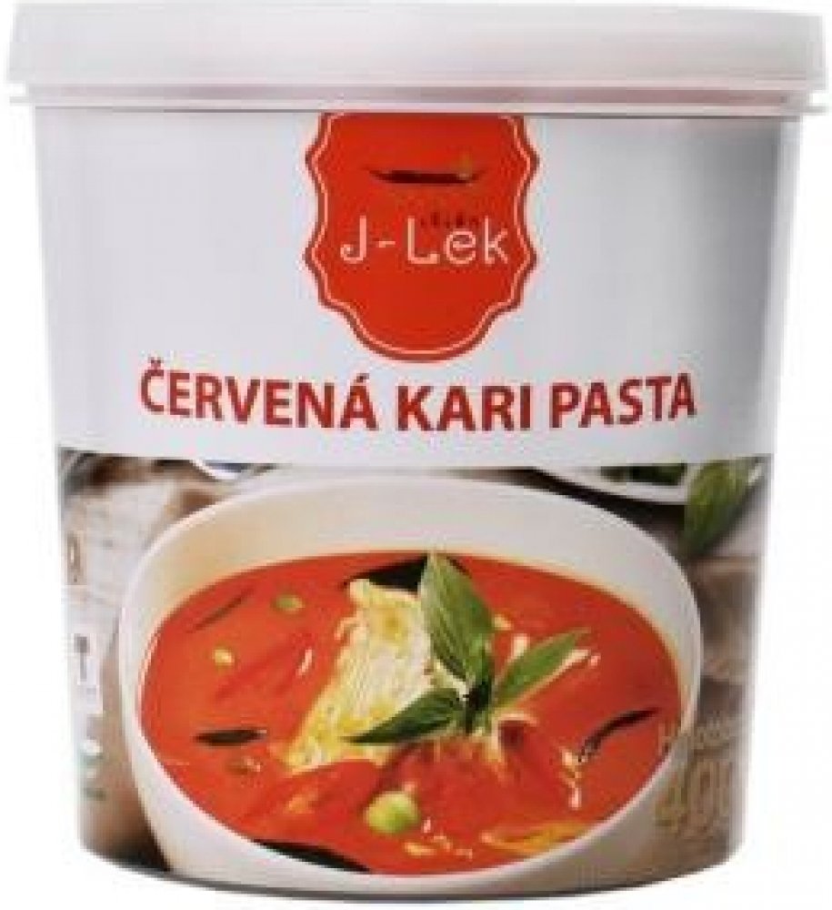 Doporučený postup:- Na lžíci rostlinného oleje opečte 50g červené kari pasty. Pak přidejte 1 hrnek (240ml) kokosového mléka.- Přidejte 200g masa. Vše dobře promíchejte a krátce opečte.- Vmíchejte ještě 1/2 hrnku kokosového mléka, 1/2 vody a přiveďte k varu.- Vařte dokud maso není téměř měkké. Před dokončením přidejte 1 a 1/2 lžičky hnědého cukru, 100g zeleniny a vařte dokud maso i zelenina nejsou zcela měkké.Složení: sušené červené chilli 28%, citrónová tráva, česnek, šalotka, galgant, koření: koriandr, kmín. Země původu Thajsko. Skladujte v suchu a chladu.Červená kari pasta je balená v sáčku vloženém do plastového kelímku (viz. obrázek). Po otevření sáčku přendejte zbývající kari pastu do kelímku, uzavřete a skladujte v lednici. Před otevřením není třeba kari pastu skladovat v lednici.