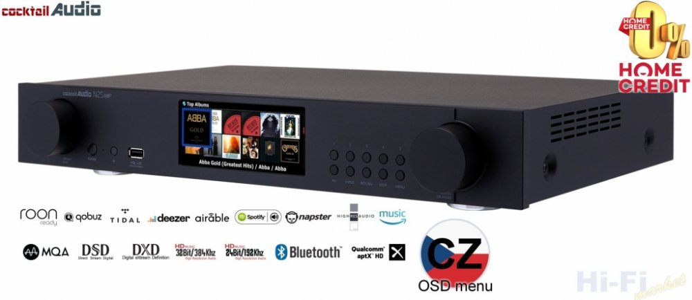 Podpora hlavních hudebních streamovacích služeb – Amazon Music, HighResAudio, TIDAL, TIDAL MQA, Deezer, Qobuz, Spotify Connect, Napster a Internet Radio (Airable)