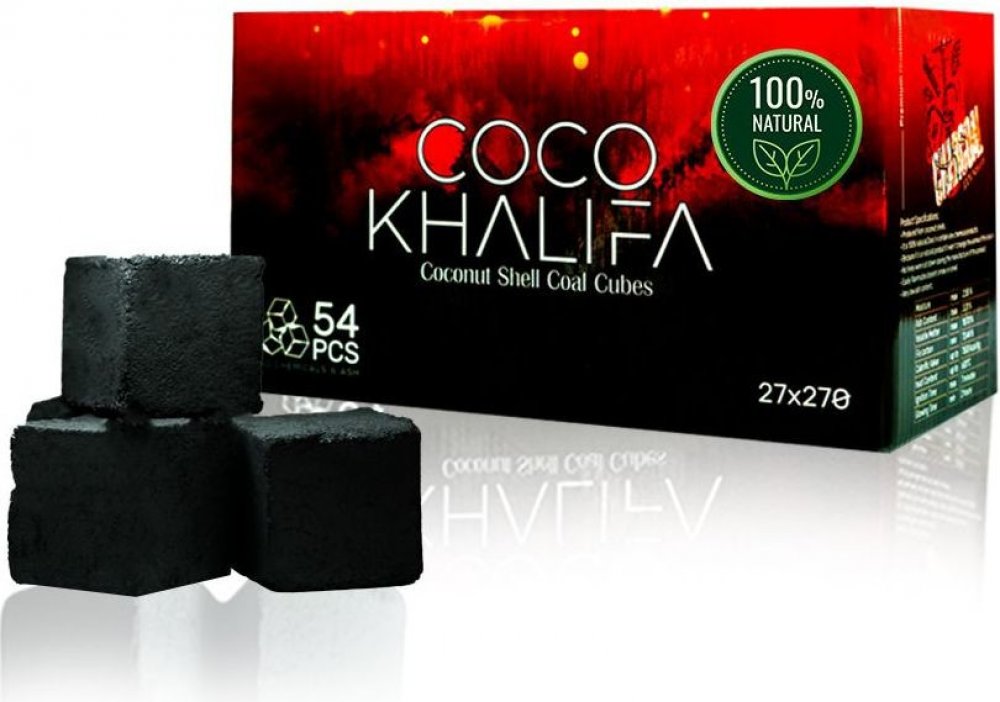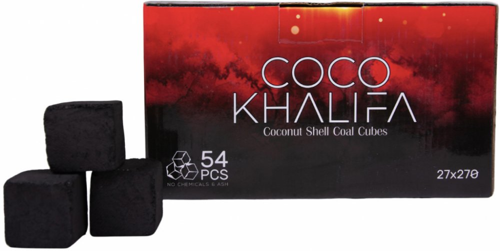 Ultimátní kokosové uhlíky Coco Khalifa pro vodní dýmky jsou tady, a to za neuvěřitelnou cenu.Coco Khalifa kokosové uhliky do vodní dýmky jsou velké kostky o délce hrany 27 mm, zpracované v nejvyšší kvalitě kokosového uhlí.Balení obsahuje 54 ks velkých uhlíků pro vodní dýmky, které mají mimořádnou výhřevnost a vydrží hořet velmi dlouho.V balení kokosových briket není žádná uhelná drť a uhlíky jsou velmi pevné. Výhřevnost je mnohem vyšší než u dosavadních grilovacích uhlíků pro vodní dýmky, uhlíky se nerozpadají a zanechávají minimum popela. Shoří téměř beze zbytků. Zůstatkový popel se skládá z max. 3,31 % celkového objemu produktu.Jedná se o ekologický produkt. Při pěstování surovin se nepoužívají ani hnojiva ani pesticidy. Spotřeba energie při produkci je velmi nízká. Při spalování se nevytváří žádná pachuť ani zápach, uhlíky Coco Khalifa navíc ani nejiskří.Tyto uhlíky pro vodní dýmky nejsou samozápalné. Na rozpálení stačí např. gril, plynový sporák nebo žhaviče z naší nabídky.Rozměr uhlíků: krychle 27 x 27 x 27 mmUhlíky Coco Khalifa jsou perfektní i pro grilování:-)
