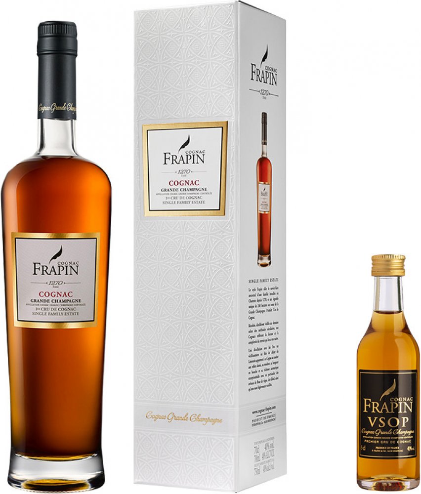 Celá farma, včetně 240 ha vinic, leží v oblasti Grande Champagne, která je považována za nejlepší označení koňaku. Je to stále v původním rodinném vlastnictví, může sledovat svou historii pěstování a destilace vinné révy až do roku 1270. Frapin kombinuje znalosti s osvědčenými metodami přenášenými generacemi na řemeslné koňaky, které jsou na svém majetku výhradně shromažďovány, destilovány a stravovány. Frapin 1270, kde všechno začíná. Exkluzivní shromážděné, destilované a stárnoucí z Frapin Estate, 1270 vyznamenání Frapin Terroir a know-how. Je to perfektní úvod před objevem celého sortimentu. Díky velkému aromatickému bohatství lze Frapin 1270 použít jako likér po večeři nebo jako aperitiv nebo pro smíšené nápoje. Slibuje to skvělý čas pro ty, kteří mají rádi spontánní aperitifery.
