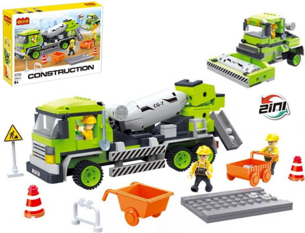 - Sada 2v1. Umožňuje sestavení míchačky betonu a silničního válce.