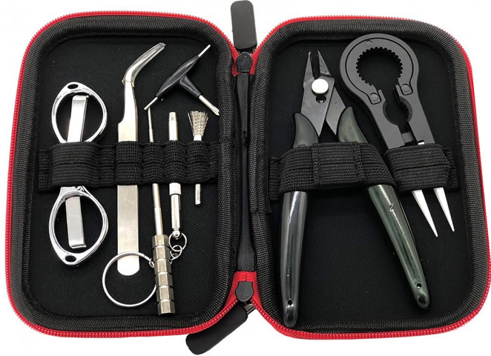1x diagonální štípací kleště1x multifunkční keramická pinzeta s nástavci1x trn pro namotání spirálek2x multifunkční šroubováček1x štětec pro údržbu atomizéru1x pinzeta s kovovými hroty1x nůžky pro zastřižení vaty