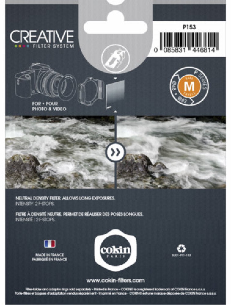 Cokin P153 šedý filtr ND 4× se používá k potlačení přemíry světelného záření, procházejícího objektivem. Vhodný k použití ve vysokohorské fotografii nebo na silně osvětlených mořských plážích. Filtr je určen pro použití s držákem Cokin P nebo Kood VF