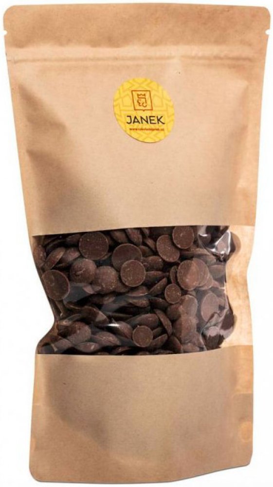 Jemná mléčná čokoláda provoněná vanilkou. Žádnými aromaty nebo esencemi. Ale zrníčky pravé vanilky. Voní, křupe a zároveň se pomalu rozplyne na jazyku. Na pečení, na vaření, na mlsání. Hodí se úplně na všechno. JANEK, to je:poctivá česká výrobačistá přírodní chuťpravá vanilkabez palmového olejebez lepkuzávislost na pořádné čokoláděIngredience: kakaová hmota 34 %, kakaové máslo, sušené mléko, cukr, emulgátor: sojový lecitin, přírodní vanilkový extraktHmotnost: 500 gVýživové údaje na 100 g: Energetická hodnota 575 kcal/2395 kJ, tuky 38 g, sacharidy 49 g z toho cukry 48 g, bílkoviny 7,9 gMinimální trvanlivost: 12 měsícůSkladujte v suchu a temnu při teplotách do 20°C. Chraňte před přímým slunečním zářením.JANKŮV příběhZačalo to v Uherském Brodě roku 2015 chutí na čokoládu. Pravou a poctivou. Čokoládu, která vám naplní každý chuťový pohárek až po samotný okraj a pak se postupně rozplyne. Se slinami se nám začaly sbíhat i myšlenky. Z touhy po výjimečné kvalitě a požitku se tak zrodila naše Čokoládovna JANEK. Děláme přesně to, na co jsme tenkrát dostali tu šílenou chuť. Děláme čokoládu bez výmluv.