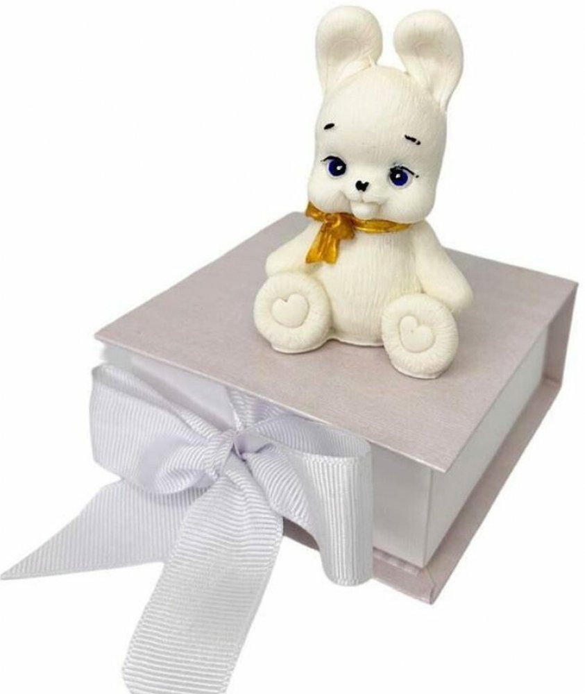 Čokoládová dekorace ve tvaru zajíčka, určená k ozdobení dortu. Hodí se pro finální dozdobení a zvýraznění motivu na povrchu dortu.