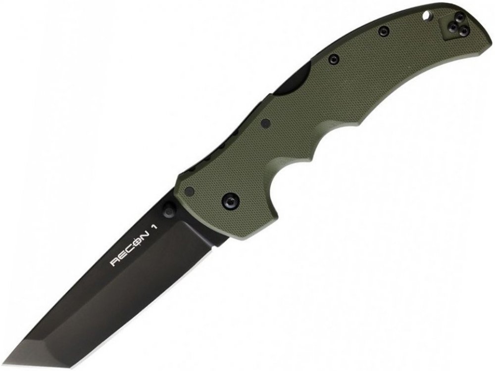 Zavírací nůž Cold Steel 27BTODBK Recon 1 Tanto Green, jednoruční otevírání, střenky z G10, hřbetní pojistka Tri-Ad lock, přemístitelný kapesní klips.