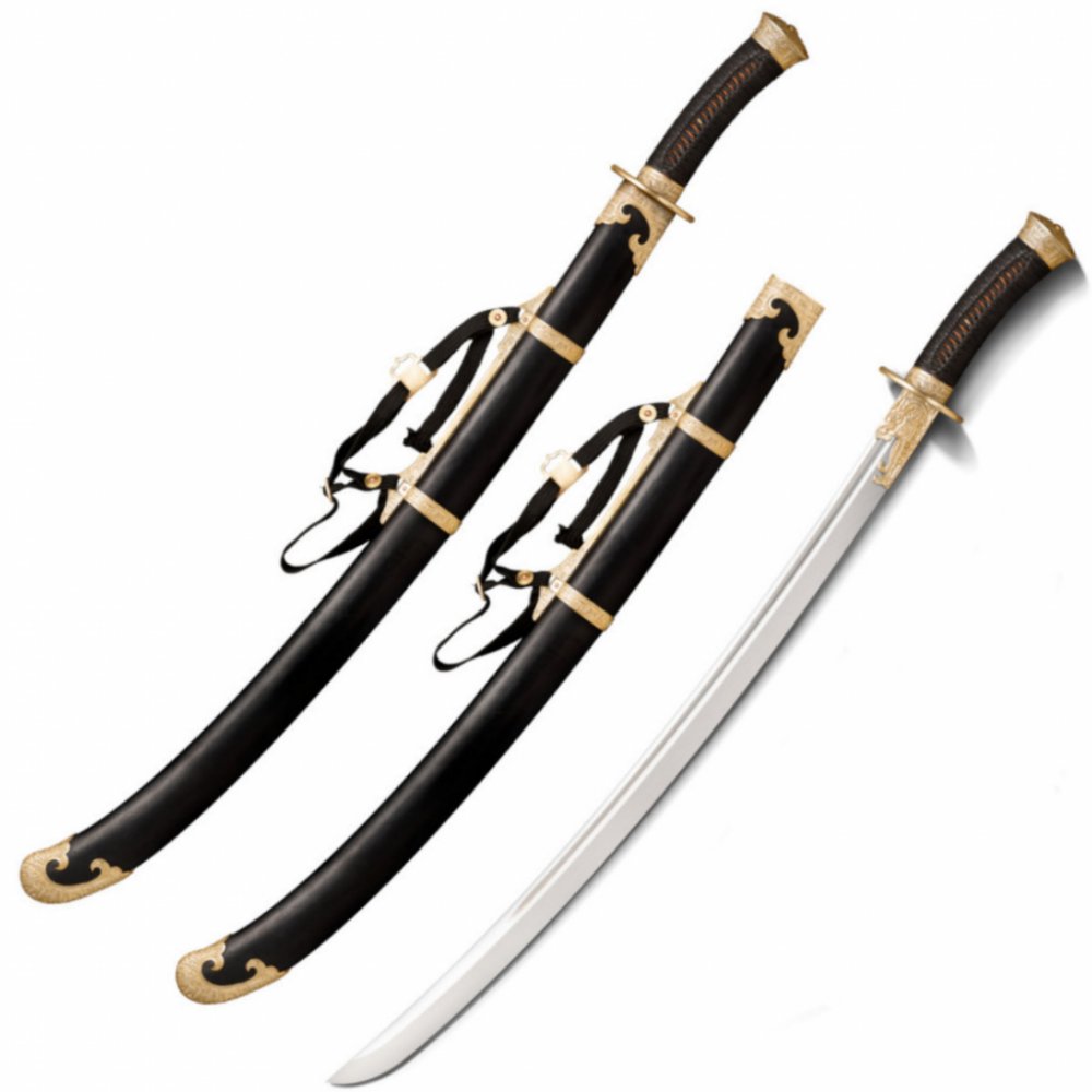 Čína má historii sociálních neshod, které vyústily ve války, revoluce a další události, které vedly k vytvoření některých unikátních zbraní. Například čínská šavle je přesně takový druh zbraně: jezdecká šavle, kterou stejně dobře přizpůsobí i pěšáci v poli. Naše čínská šavle je ručně kovaná z vysoce uhlíkové oceli. Čepel má jednu ¾ délky plnější a je po své délce mírně zakřivená a končí ve zvednutém hrotu, díky čemuž je ideální pro řezání a sekání, aniž by se vzdal svého tlačného potenciálu. Na jílci je masivní mosazný kryt kotouče, hluboce vyrytý v klasickém stylu. Rukojeť má jádro z tvrdého dřeva a je opletená černou hedvábnou šňůrou a zakončená mosazným podhlavníkem a hlavicí. Pochva je vyrobena z tvrdého dřeva a potažena černou kůží a má mosazné ozdobné kování. I když je tento meč nepochybně ve stylu čínská šavle, mohl by snadno fungovat pro každého stepního válečníka, který se znovu zabýval, a je zvláště vhodný pro mongolské, čínské, mandžuské re-enactory a bojové umělce.