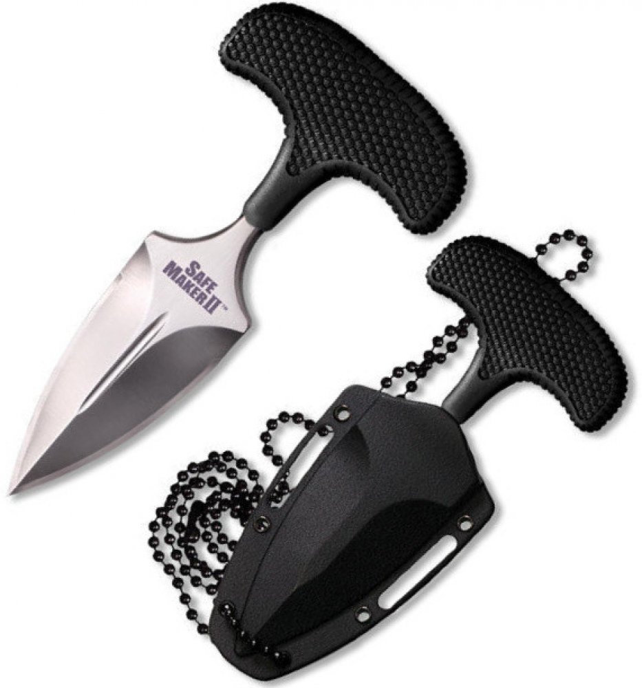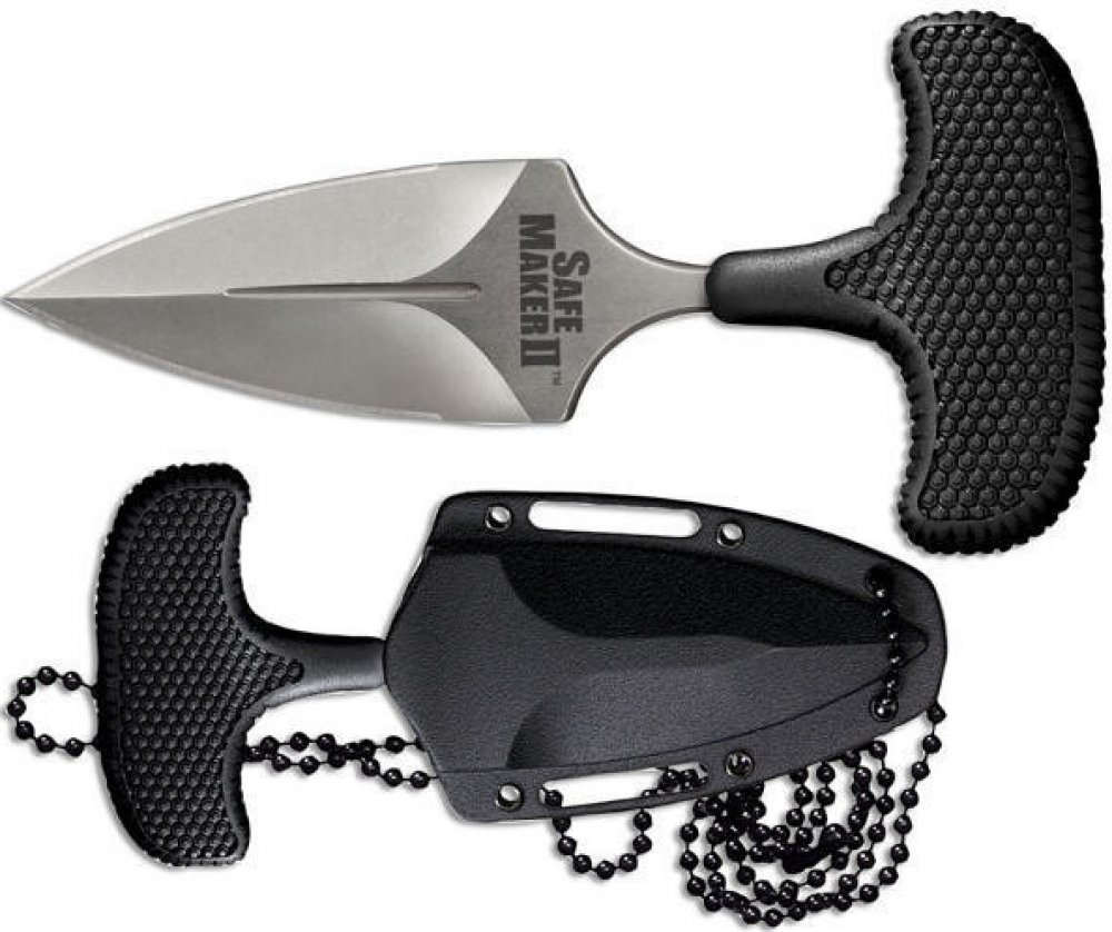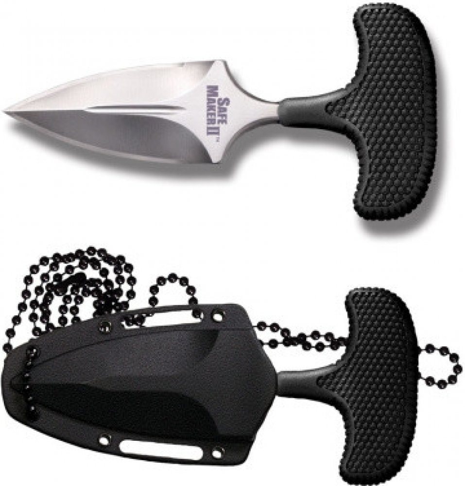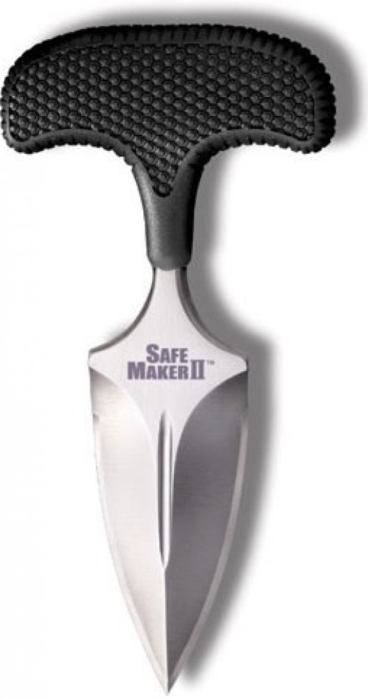 Tlačné dýky, Cold Steel Safe Maker I jsou bez pochyby ty nejlepší komerčně vyráběné tlačné nože na světě. Čepel a střenka ve tvaru „T“ jsou ukované z jednoho kusu nerezové ocele AUS 8A. Díky tomuto zpracování je nůž prakticky nezlomitelný. Střenka výborně padne do ruky a materiál Long Kray-Ex™ „T“ rukojeti tlumí a je odolný vůči nárazům. Safe Makery se vyrábí ve dvou velikostech čepele, 114 mm a 8...