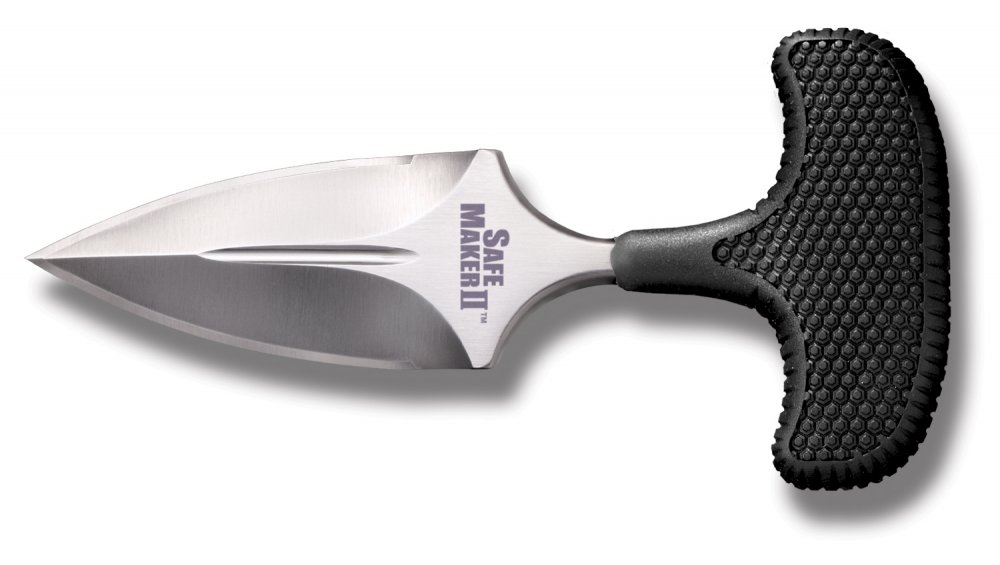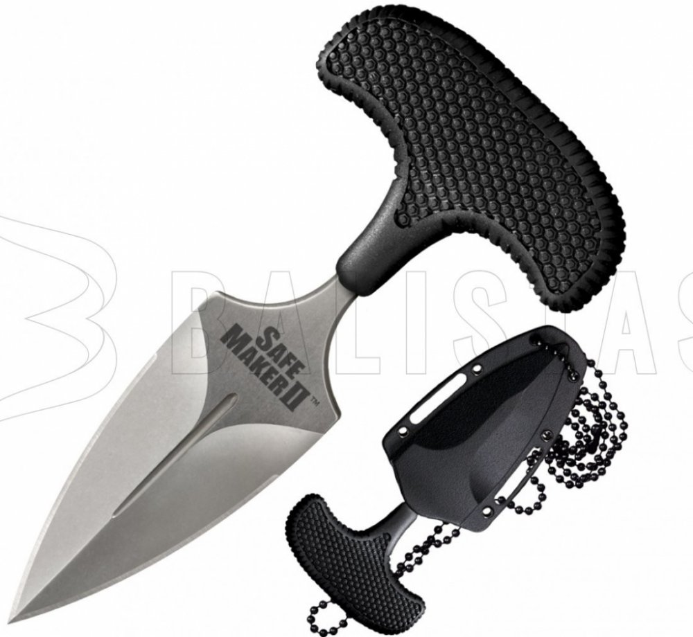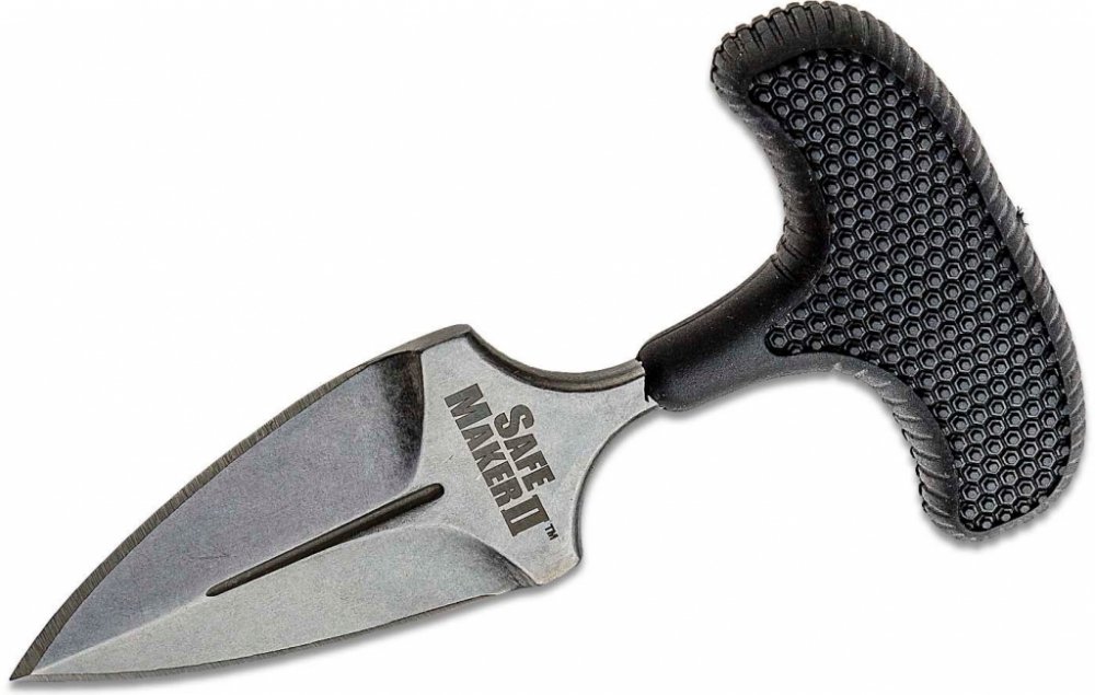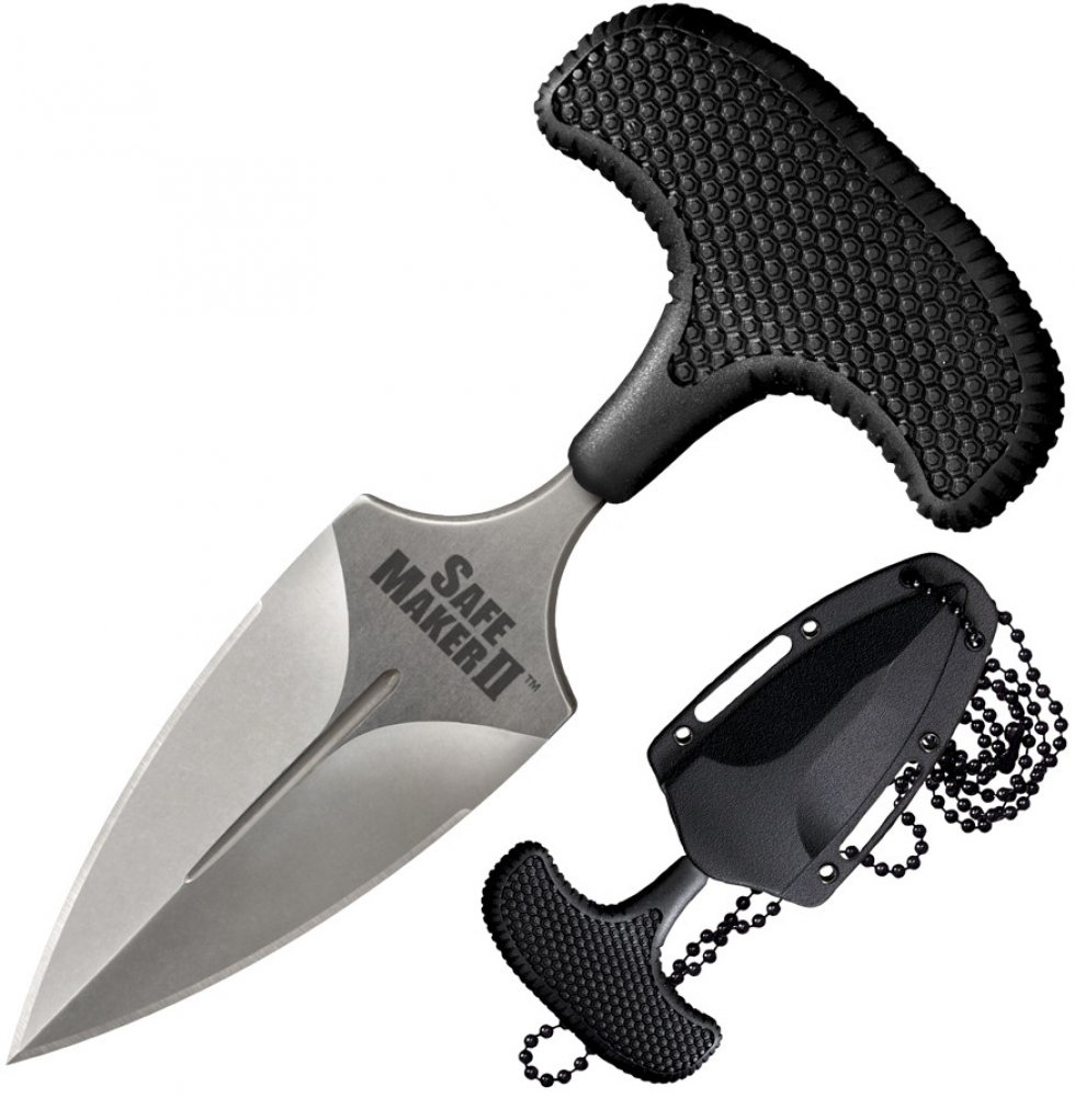 Tlačné dýky, Cold Steel Safe Maker I jsou bez pochyby ty nejlepší komerčně vyráběné tlačné nože na světě. Čepel a střenka ve tvaru „T“ jsou ukované z jednoho kusu nerezové ocele AUS 8A. Díky tomuto zpracování je nůž prakticky nezlomitelný. Střenka výborně padne do ruky a materiál Long Kray-Ex™ „T“ rukojeti tlumí a je odolný vůči nárazům. Safe Makery se vyrábí ve dvou velikostech čepele, 114 mm a 8...