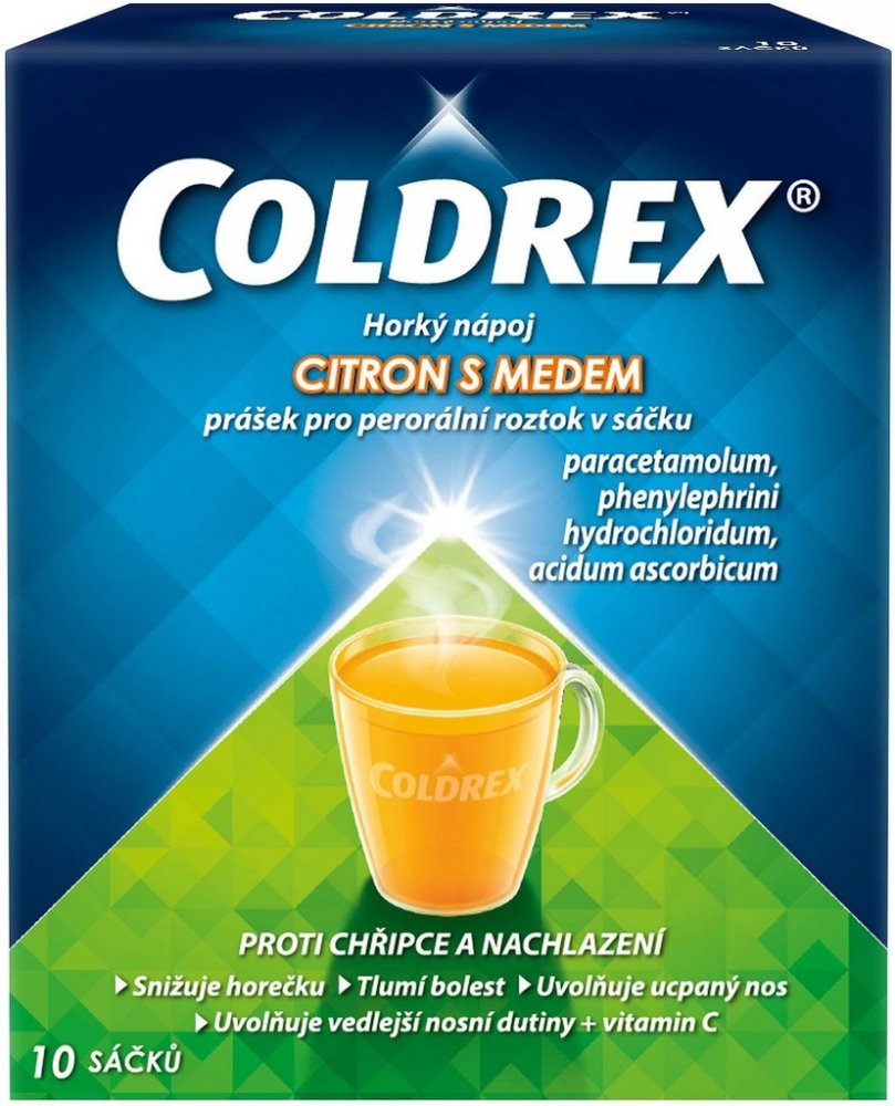 Coldrex horký nápoj citron s medem je vhodný pro dospělé a dospívající od 15 let (s hmotností nad 50 kg) k úlevě od nepříjemných příznaků chřipky a nachlazení. Coldrex citron s medem odstraňuje bolesti v krku, uvolňuje nos i vedlejší nosní dutiny, odstraňuje bolesti hlavy, svalů i kloubů, snižuje horečku a doplňuje vitamín C.