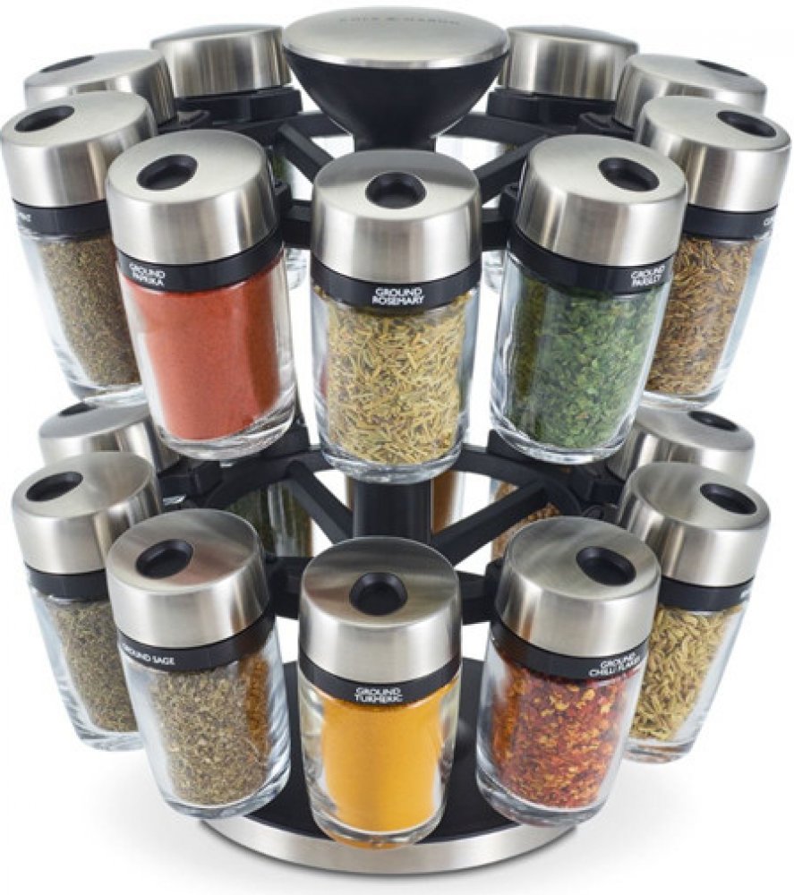 Tento 20 sklenicový kolotoč na bylinky a koření dokonale kombinuje stylovou eleganci s výjimečnou funkcí. Tělo karuselu je vyrobeno z černého plastu pro dlouhou životnost a doplněno klasickou broušenou nerezovou ocelí.