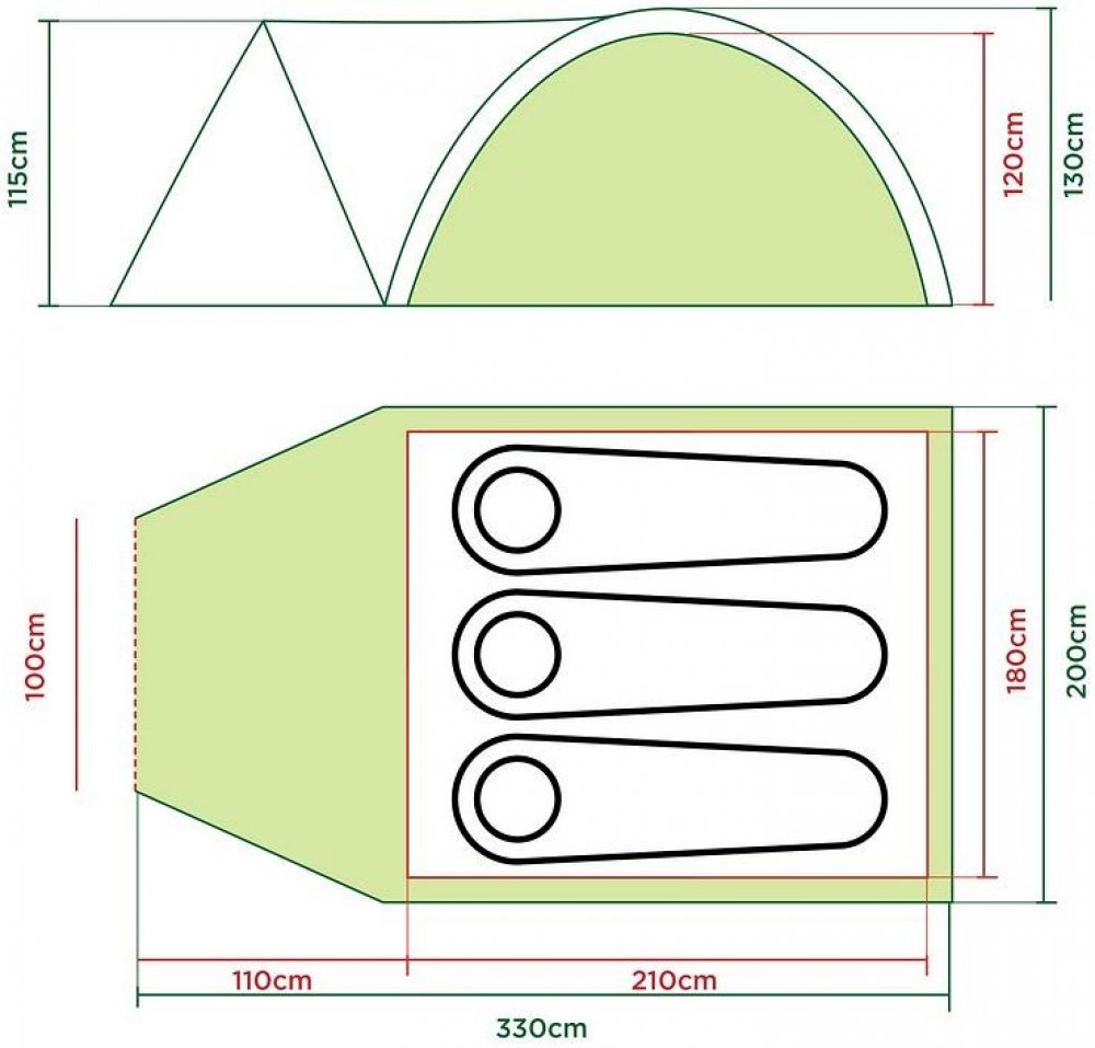 4.9 kg 330 cm 3000 mm 200 cm 130 cm 3 1 Coleman turistické s jednou ložnicí kopulové 1