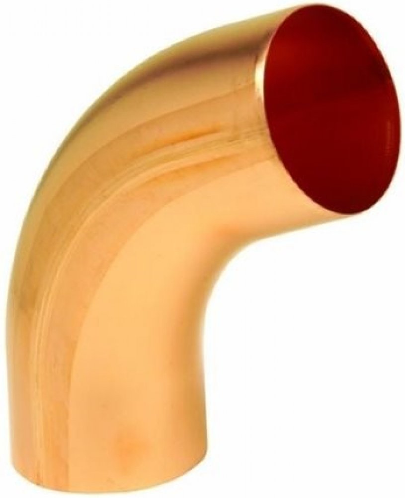 Okapové koleno 85° pro svodovou rouru 100 mm. Materiál: měď.
