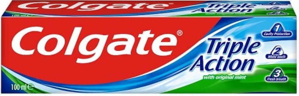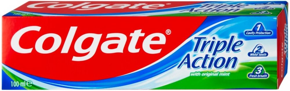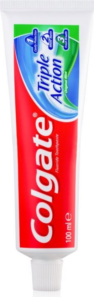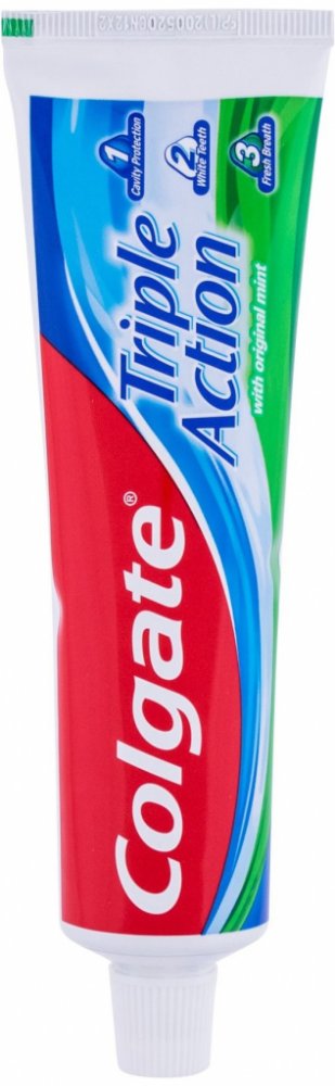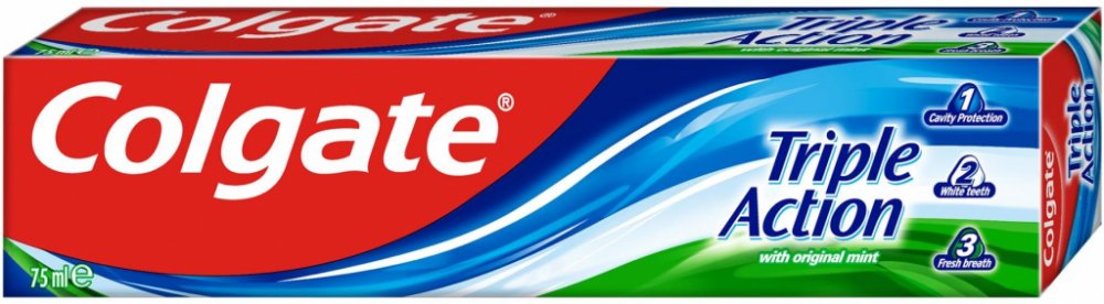 Zubní pasta Triple Action zajišťuje maximální ochranu před zubním kazem, bílé zuby a svěží dech. Napomáhá chránit před bakteriemi způsobujícími zubní kaz, redukuje tvorbu bakterií způsobujících žloutnutí zubů a napomáhá chránit před bakteriemi způsobujícími zápach z úst.