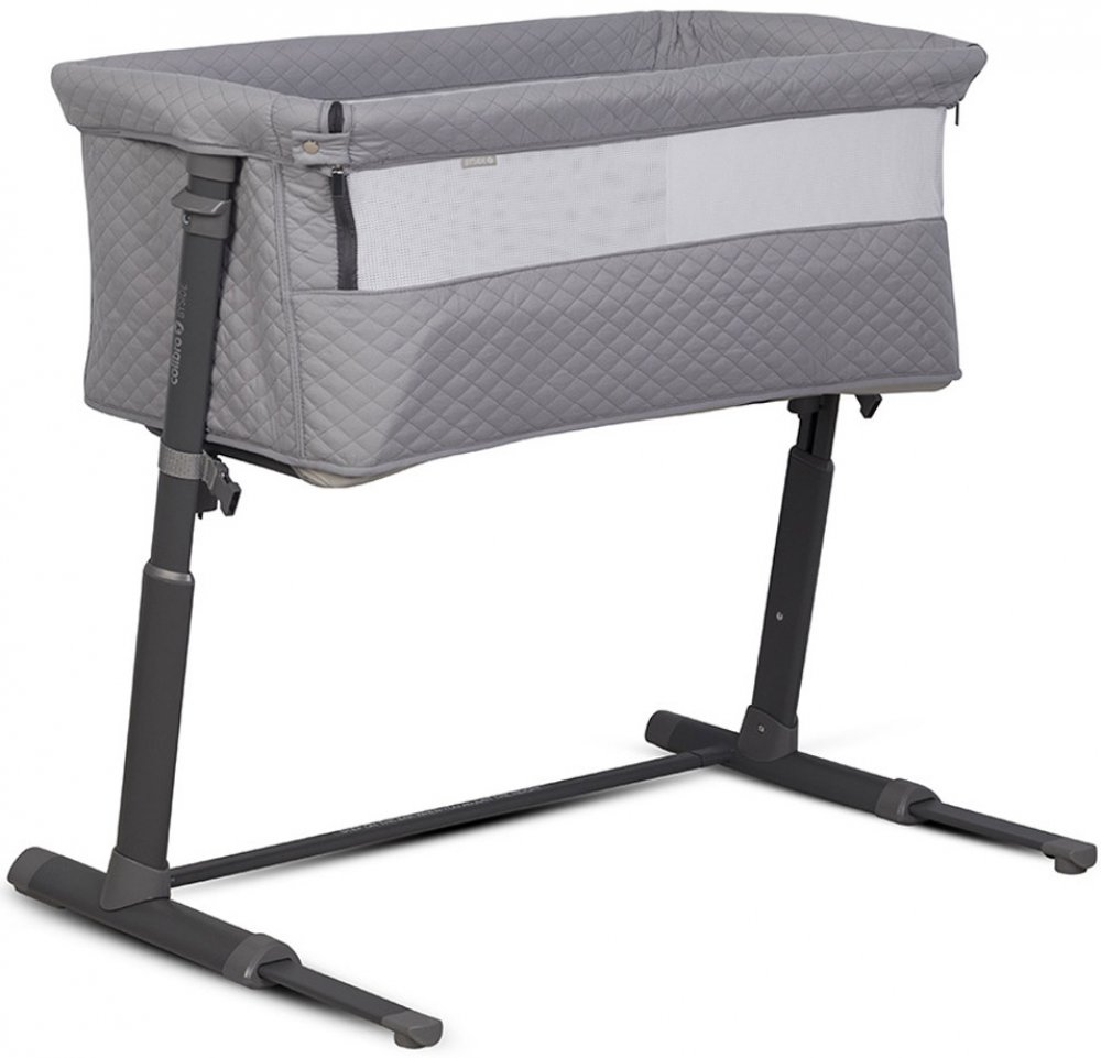 Přistavená postýlka pro dítě COLIBRO BYSIDE – přístavek k posteli Postýlka BYSIDE značky COLIBRO je ideální jako samostatná dětská postýlka na spaní, ale i jako přístavek pro dítě k rodičovské posteli. Umožňuje bezpečné a pohodlné společné přespávání dítěte s rodiči. Postýlka pevně přiléhá k rodičovské posteli díky systému popruhů a až 9 nastavením výšky. Charakteristický tvar ve tvaru písmene „L“ umožňuje lepší přizpůsobení přístavku k posteli. Automatický teleskopický systém nastavení délky spodních podpěr umožňuje přesné přizpůsobení i k postelím bez prostoru pod nimi (pokud postel těsně přiléhá k podlaze). Postýlka BYSIDE má otevírací boční stranu pro jednoduchý a pohodlný přístup k dítěti. Speciální zábrana vysoká 15 cm zabraňuje nekontrolovanému přechodu dítěte na matraci rodičů, čímž je dítě v bezpečí a zároveň má každý vlastní prostor na spaní. Díky přístavné postýlce budete mít lepší kontrolu a noční krmení bude jednodušší – pohodlně nakrmíte dítě bez nutnosti vstávat z postele. Postýlka BYSIDE může být použita i jako samostatná volně stojící dětská postýlka. Jeden boční panel je celý z prodyšné síťoviny, což zlepšuje viditelnost dítěte během spánku. Funkce dvoustupňového nastavení výšky umožňuje nastavit postýlku tak, aby hlavička dítěte byla výše, což usnadňuje dýchání a zabraňuje zadušení, což je užitečné při infekcích horních dýchacích cest nebo při grckání po jídle. Vnitřek postýlky a matrace jsou vystlané kvalitní bavlnou. Matrace má zpevňující desku a je vyrobená z vysoce elastické pěny s tvrdostí přizpůsobenou pro děti do 9 kg. Vnější potah je z módní prošívané látky s jemným vlasem, což dělá postýlku elegantní a příjemnou na dotek. V kombinaci s grafitovým rámem se postýlka hodí do každé ložnice. Hlavní výhody přístavné postýlky BYSIDE: Otevírací bok – umožňuje společné spaní dítěte a rodičů při zachování vlastního prostoru a bezpečnosti. 9 nastavení výšky – přizpůsobíte postýlku téměř ke každé posteli. Vyšší uložená hlavička – dvoustupňové nastavení výšky usnadňuje dýchání při ucpaném nose. Systém upevnění popruhy – postýlka pevně přiléhá k matraci rodičů. Funkce volně stojící postýlky – můžete ji použít jako samostatnou dětskou postýlku nebo druhou postýlku v domácnosti, která je lehčí a mobilnější než dřevěná. Automatická regulace délky podpěr – ideální pro postele přiléhající k podlaze bez prostoru pod nimi. Technické údaje: Dětská postýlka s funkcí přístavku pro děti do 9 kg 9 nastavení výšky Možnost naklonění postýlky do 2 poloh Otevírací bok Zábrana na ochranu dítěte Systém upevnění popruhy Automatická regulace délky podpěr Vysokokvalitní matrace a bavlněné vystlaní Pevná a stabilní konstrukce Jeden boční panel celý ze síťoviny Rozměry: Šířka matrace: 48 cm Délka matrace: 81 cm Výška zábrany: 15 cm Výška od země po spodní rám (podle nastavení): 44 cm – 64 cm Výška od země po horní rám (podle nastavení): 80 cm – 100 cm Délka základny: 93 cm Šířka základny (podle nastavení vzdálenosti): 47 cm – 66 cm Hmotnost: 9,4 kg