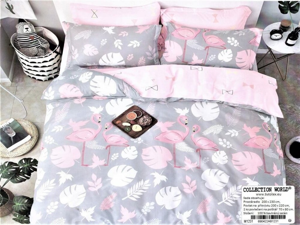 Luxusní francouzské saténové povlečení Flamingo je vyrobeno ze 100% hladké bavlny-satén.