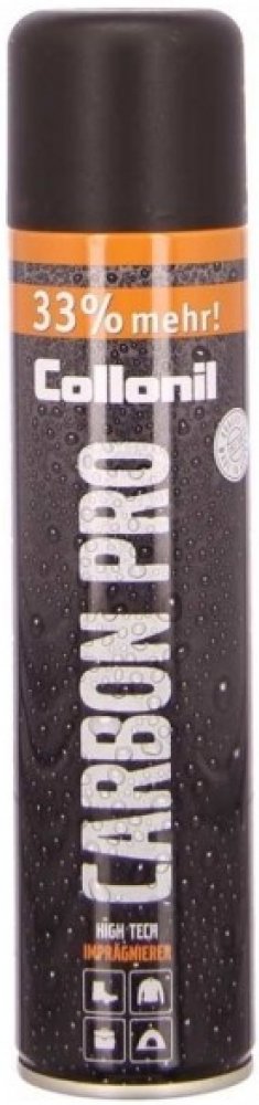 Nejnovější vývoj inspirovaný karbonovou technologii v oblasti impregnací s extrémně vysokou účinností je Collonil CARBON PRO. Revoluční technologie, s níž vstupujeme do nové éry v ošetřování obuvi. Nebyl nikdy na trhu výrobek, který by vydržel déle a chránil lépe. Jedinečně kombinuje ochranu a dokonalou prodyšnost. Chrání proti hlubokému zašpinění a skvrnám. Chrání proti pronikání vlhkosti. Zachovává prodyšnost a plnou funkčnost klimamebrán. Pravidelná aplikace umožňuje snadné čištění. Je určen pro všechny druhy materiálů včetně klimamebrán. Oblečení, obuv, tašky, stany, batohy....