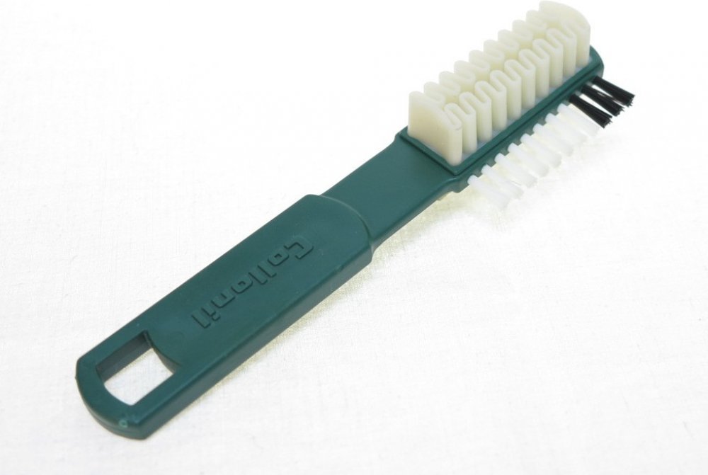Collonil krepový kartáček malý je vyroben ze speciálního kaučuku a je určen k čištění semiše a nubuku kombinovaný s perlovým kartáčkem pro čištění těžko přístupných míst obuvi. Kartáček je možno použít i pro vyčesání vlasu kůže po použití prostředku Velours + Nubuk spray. Collonil krepový kartáček malý je vyroben ze speciálního kaučuku a je určen k čištění semiše a nubuku kombinovaný s perlovým kartáčkem pro čištění těžko přístupných míst obuvi. Kartáček je možno použít i pro vyčesání vlasu kůže po použití prostředku Velours + Nubuk spray.