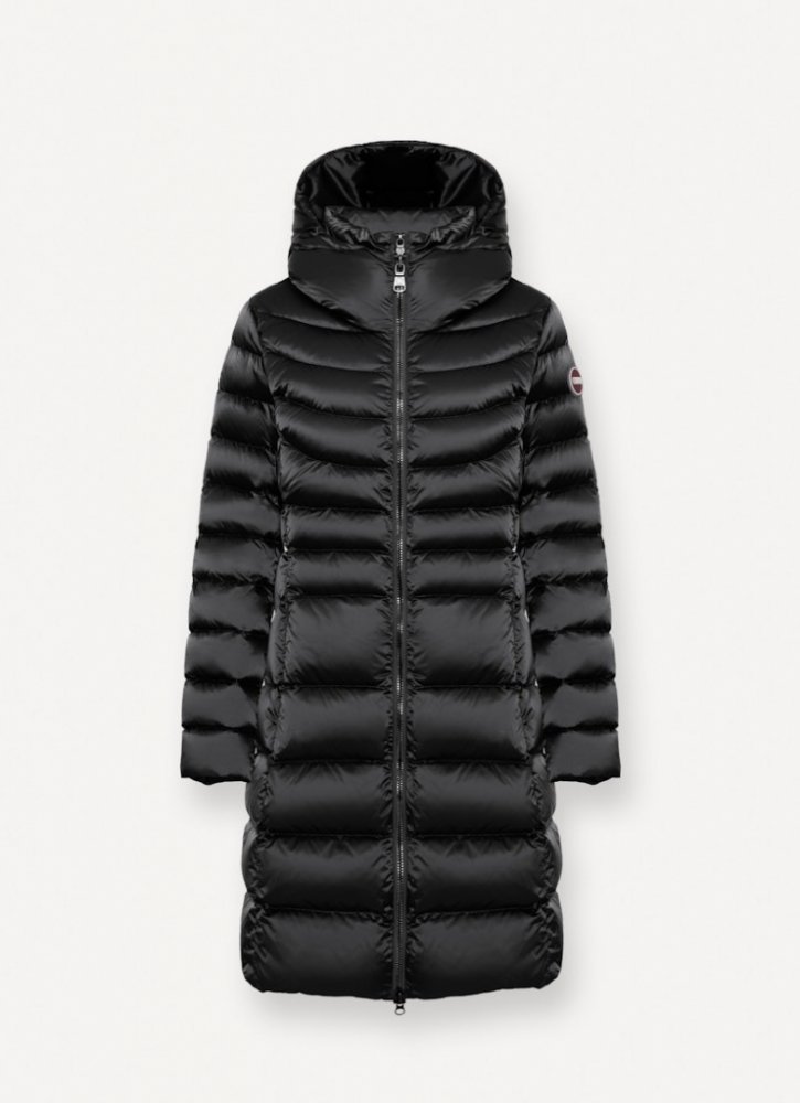 Dámská bunda Colmar Originals LADIES JACKET s celorozepínacím zipem a vysokým límcem vyrobená z recyklované polyamidové tkaniny smíchané s černou barvenou nabízí funkční a pohodlné provedení. Disponuje vodoodpudivou úpravou a zateplením v podobě přírodního prachového peří. Využívat můžete praktické kapsy. Na levém rukávu obsahuje bunda nášivku Colmar a na pravé straně zad nášivku „C“.