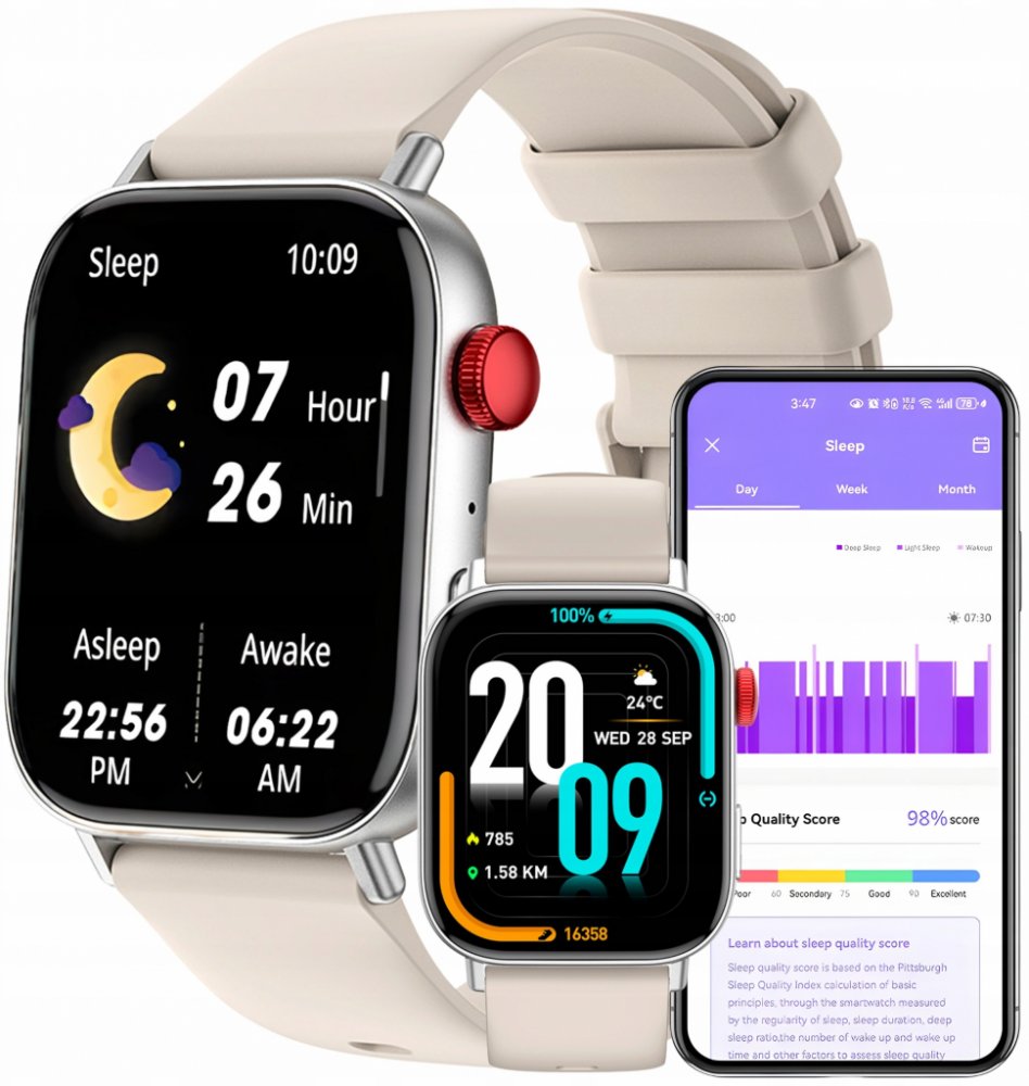 Komplexní zdravotní monitorování: Hodinky jsou vybaveny množstvím pokročilých senzorů, které umožňují 24/7 monitorování klíčových zdravotních parametrů jako je srdeční tep, úroveň stresu, spánek a zdraví žen.
