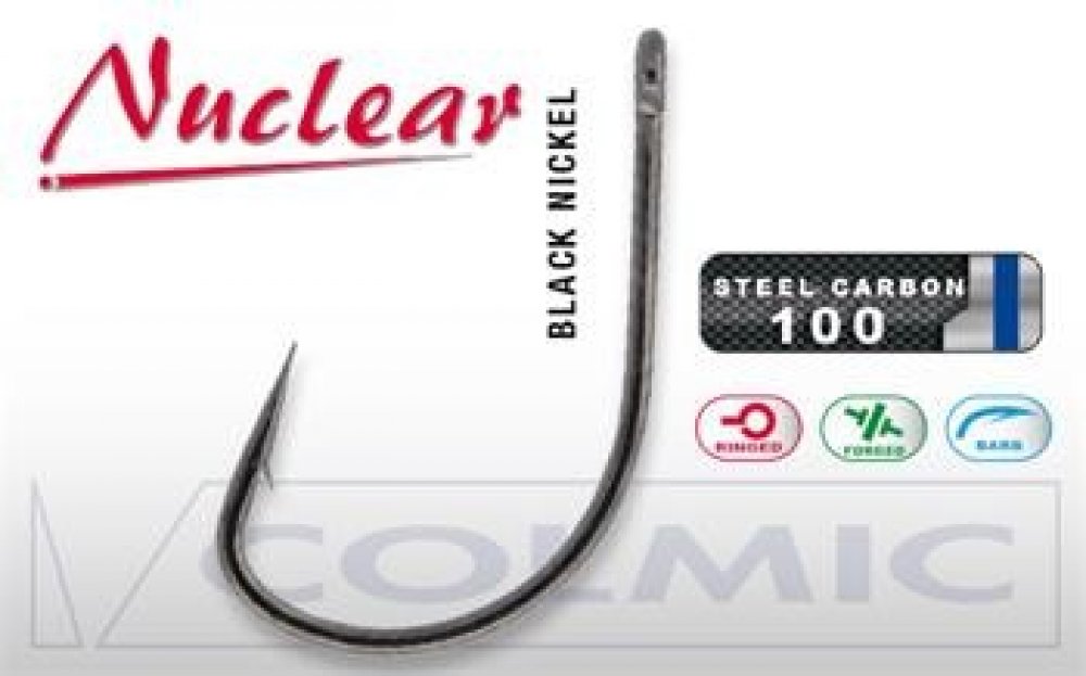 Háčky COLMIC Nuclear MR300, jeden z nejpoužívanějších háčků pro suchozemský nebo mořský rybolov. Tenké háčky s očkem ze silného drátu z černého niklu mírně ohnuté dovnitř. Umožňují silné a rychlé proniknutí háčku za nosní dutinu ryby. V mořském rybaření je lze efektivně využít při technice odlévání surfů a při lovu...