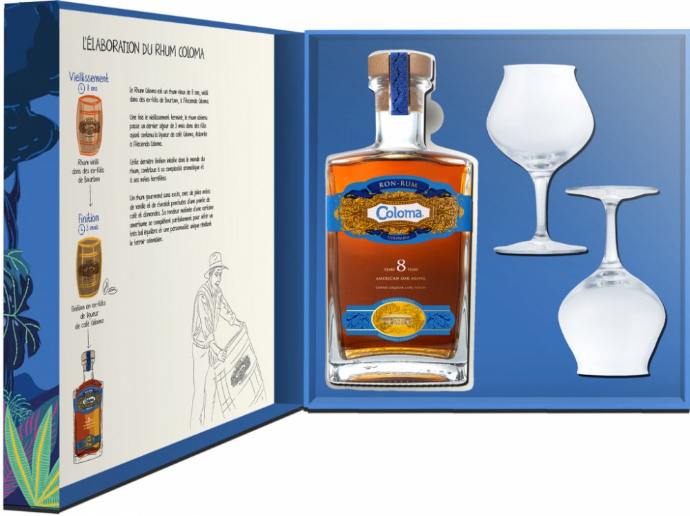 COLOMA 8y je bohatý, komplexní a chuťově velmi přívětivý rum, hrdý reprezentant kolumbijské produkce. Vyzrává úplných 8 let (nejedná se o metodu Solera) ve výšce cca 1700 m.n.m. v sudech z amerického bílého dubu, ve kterých byl dříve uložen bourbon. Jedinečným obohacením jeho vůní a chutě je zmíněné konečné (cca 3-měsíční) dozrávání v malých sudech po stejnojmenném vyhlášeném kávovém likéru.