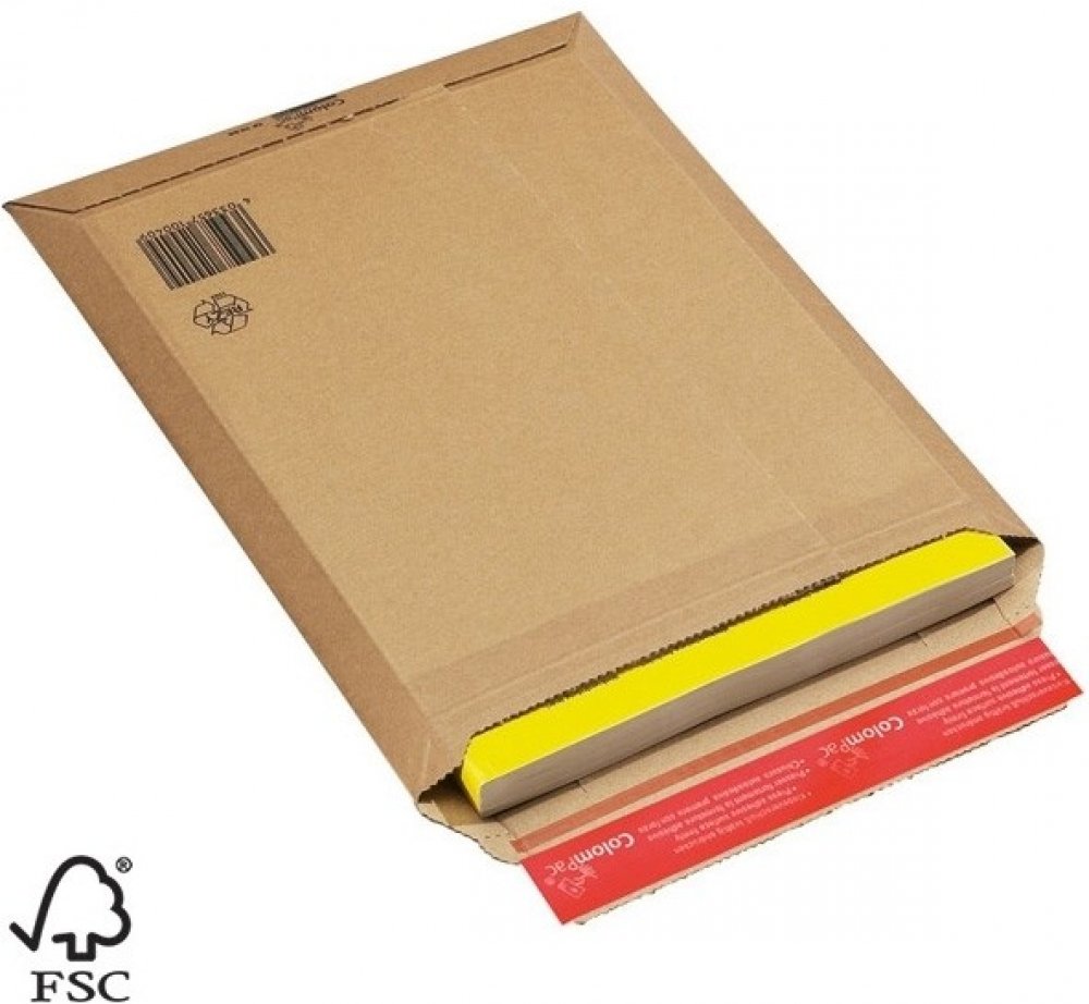 Kartonová obálka A4+ ColomPac z pevné hnědé vlnité lepenky – mikrovlny. Obálky jsou vhodné pro zasílání prospektů, časopisů, dokumentů, katalogů, fotografií, kalendářů, tiskovin, knih, DVD, textilu atpod. Samouzavírací proužek ColomPac® Integrovaný proužek pro snadné otevření Variabilní výška až 50 mm Pevná lepenka zamezující ohnutí Vyztužené hrany Vlastnosti produktu vnitřní výška: 340 mm vnit...