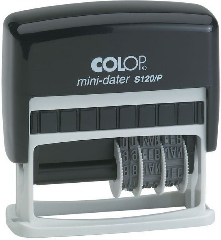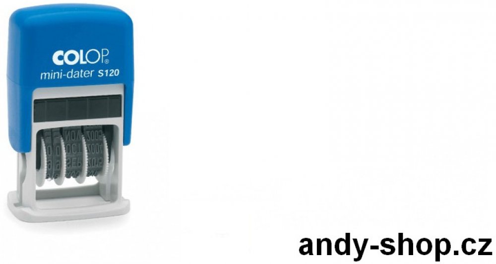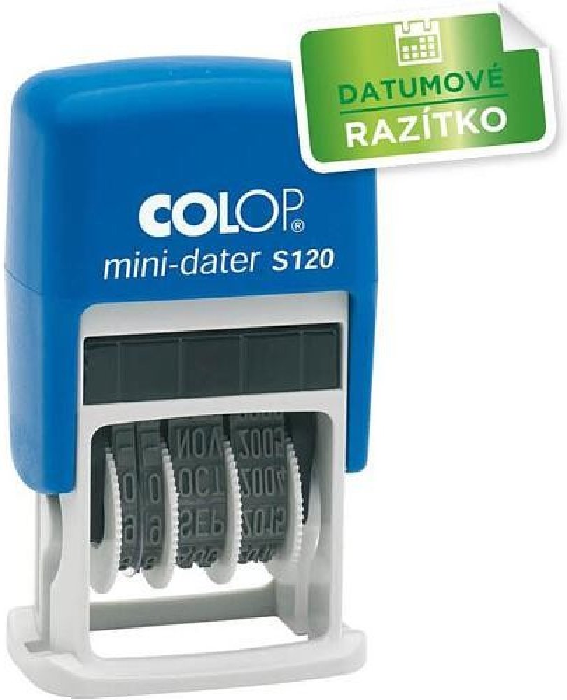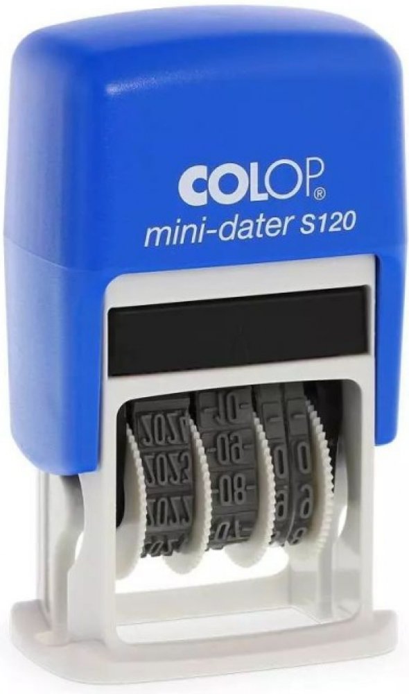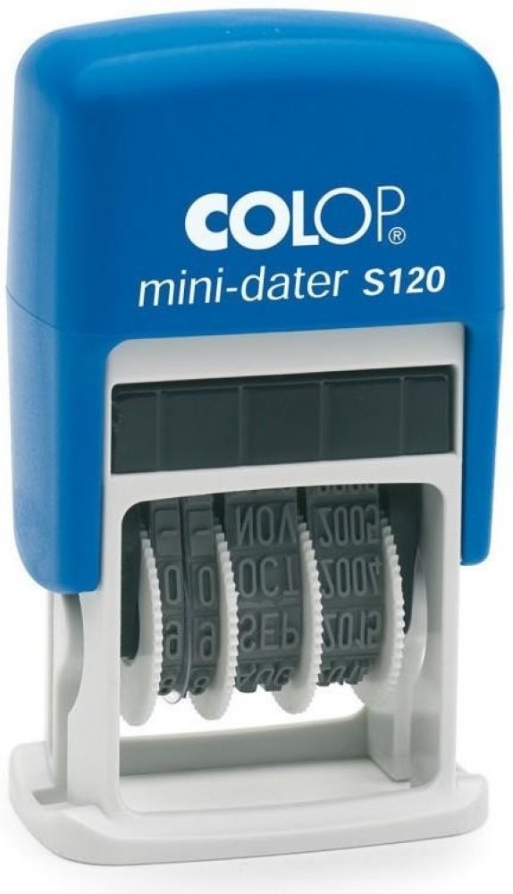 120Samobarvící datumové razítko Mini-Dater S 120 s polštářkěm a textem ve formátu den/měsíc/rok, obtisk s výškou datumu 4 mm a šířka otisku 19 mm.