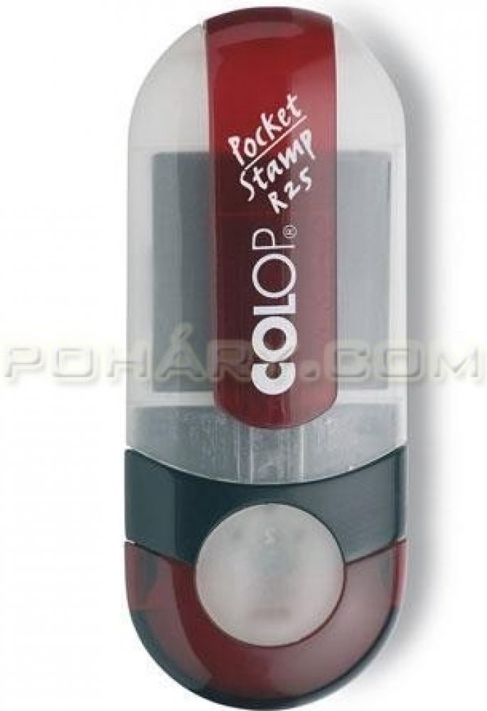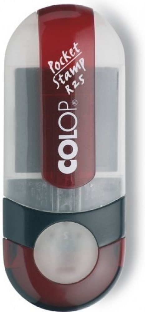 Kapesní samonamáčecí razítko Colop Pocket Stamp R25 s textovou deskou o rozměru 25 mm s polštářkem a bez štočku. Barva otisku: černá, barva razítka červená. Pro svoje úžasné rozměry srovnatelné s velikostí zapalovače je nejoblíbenějším a nejžádanějším razítkem ve světě geocachingu. Mnohostranně použitelné razítko pro text i jednoduchou grafiku v různobarevných plastových kombinacích (černá, modrá, červená ). Moderní design dělá COLOP Pocket Stamp R25 menším a lépe do ruky padnoucím, než srovnatelné typy konkurenčních produktů. Mnohokrát prověřeno - perfektní otisk, který může být v různých barvách (černá, modrá, červená ).