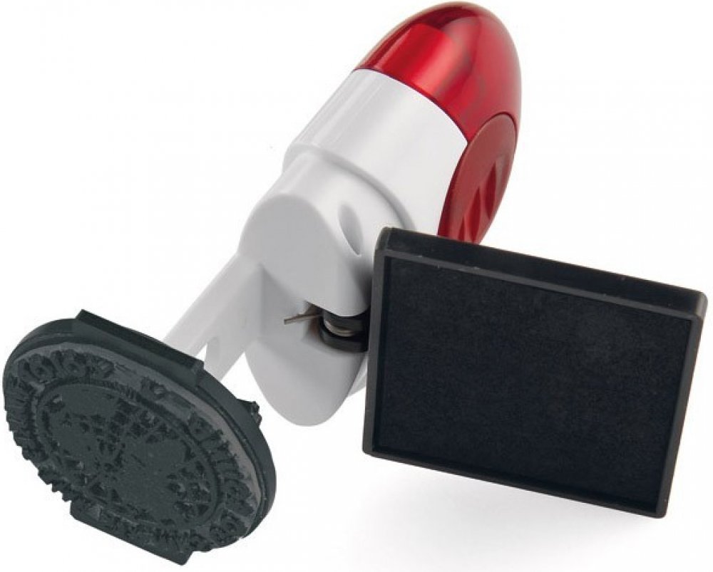 Kapesní samonamáčecí razítko Colop Pocket Stamp R25 s textovou deskou o rozměru 25 mm s polštářkem a bez štočku. Barva otisku: černá, barva razítka červená. Pro svoje úžasné rozměry srovnatelné s velikostí zapalovače je nejoblíbenějším a nejžádanějším razítkem ve světě geocachingu. Mnohostranně použitelné razítko pro text i jednoduchou grafiku v různobarevných plastových kombinacích (černá, modr...