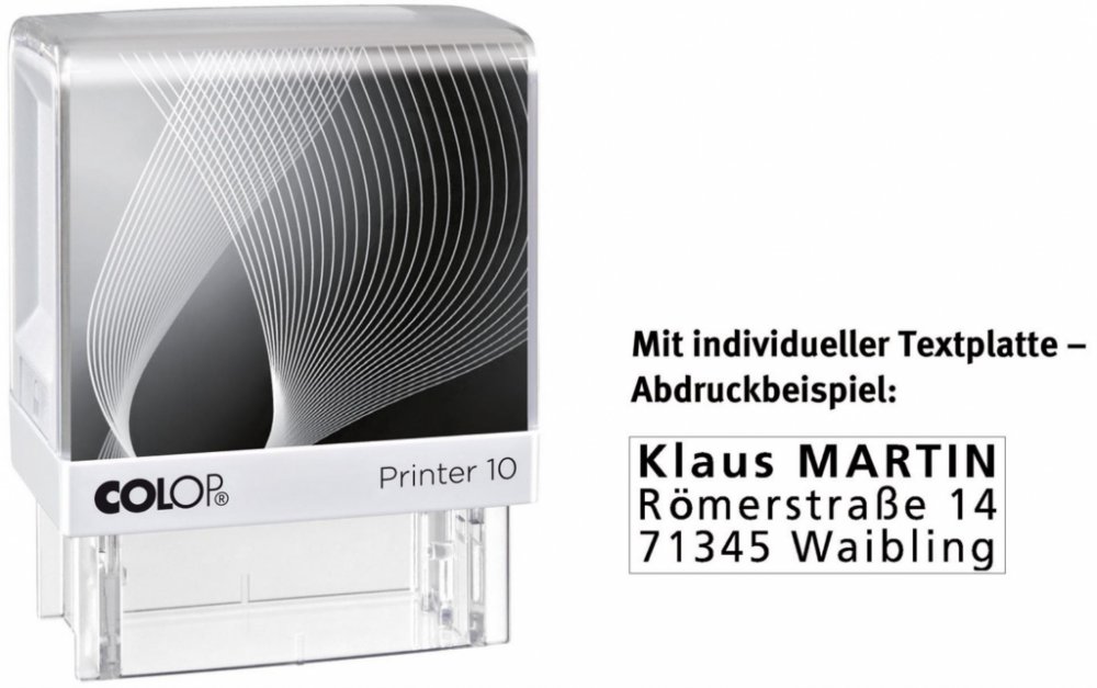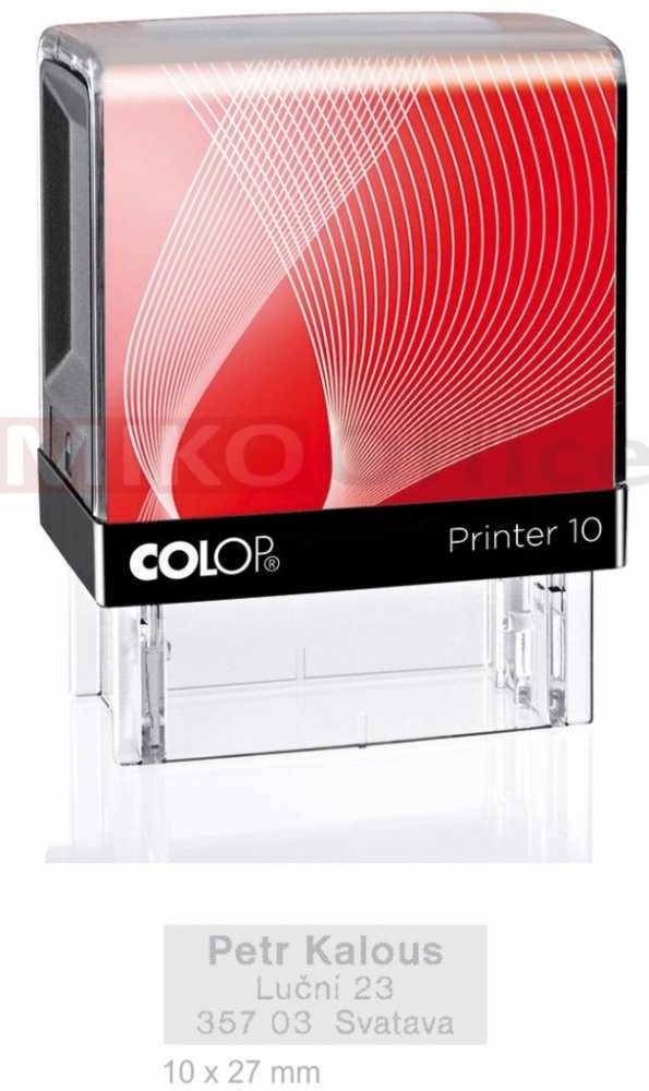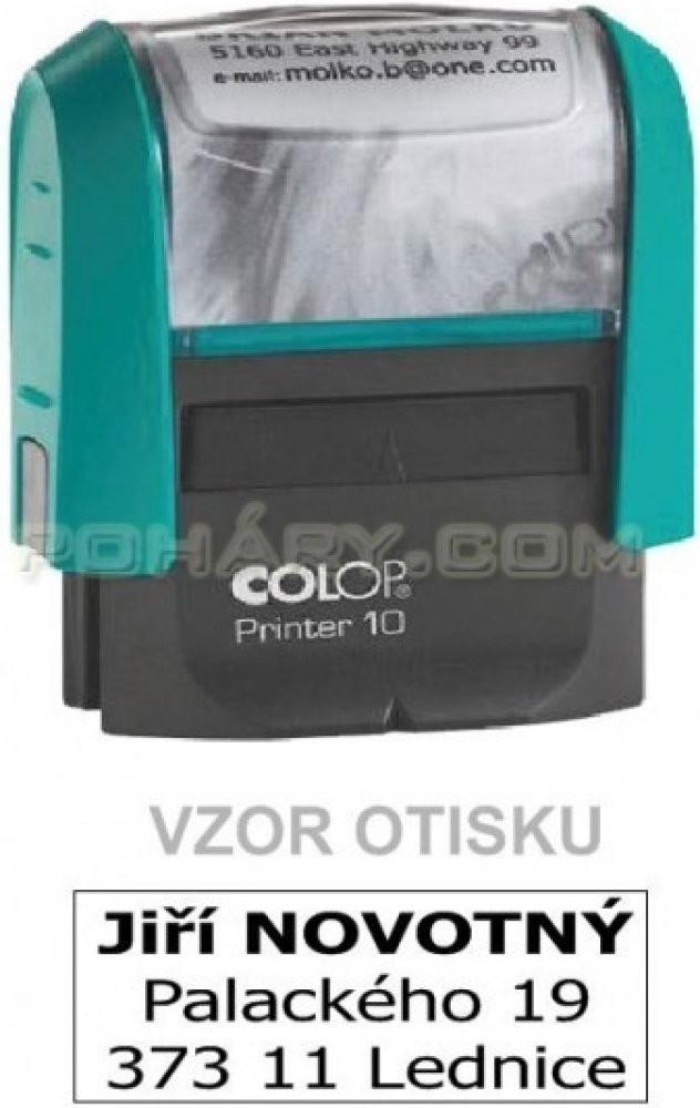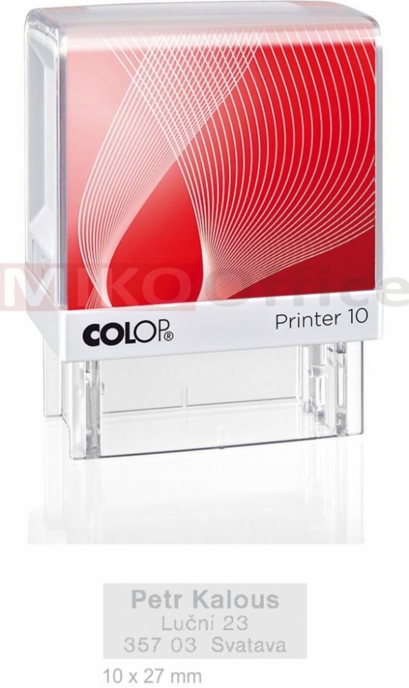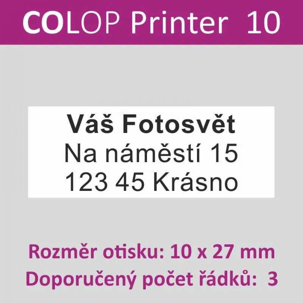 Toto samobarvící razítko od značky COLOP je ideální řešení pro krátké texty jako například adresy, podpisy a podobné texty. Toto razítko nabízí prostor pro 3 řádky textu a velikost otisku 27 x 10 mm. Razítko vyniká svou dlouhou životností až 5 tisíc otisků. Razítko také nabízí jednoduchou personalizaci: stačí nahrát své logo či fotku. Toto razítko tedy skvěle kombinuje technické detaily, praktičnost a přizbůsobení.