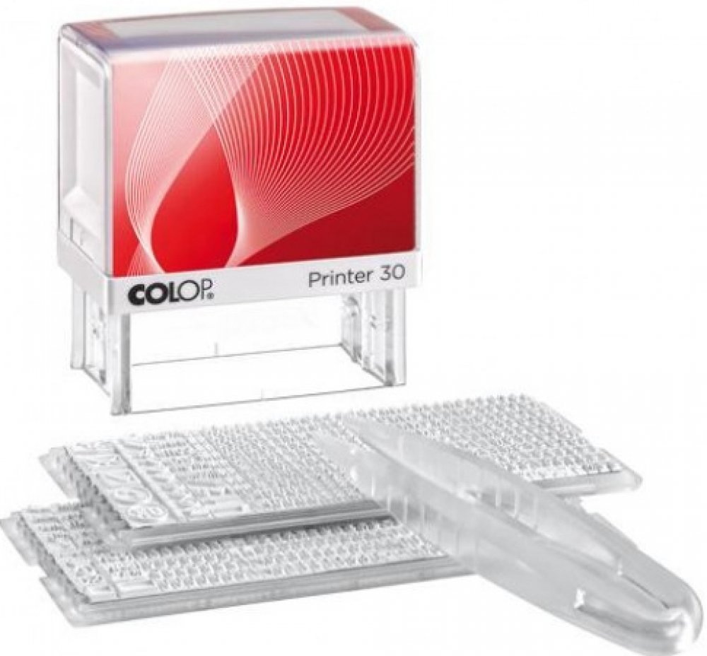 Razítko Printer 30/2 SET je razítko k vlastnímu sestavení požadovaného textu. V razítku je možno sestavit 5 řádky textu o velikosti otisku 17x47 mm a sestavení není složité, pinzeta pro snadnou manipulaci je součást balení. Printer 30/2 SET jsou nová a vylepšená razítka s patentovaným, extra velkým image okénkem. Konstrukce razítka umožňuje snadnou výměnu již vloženého textu (loga, speciální texty...