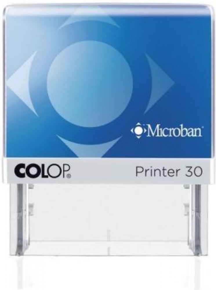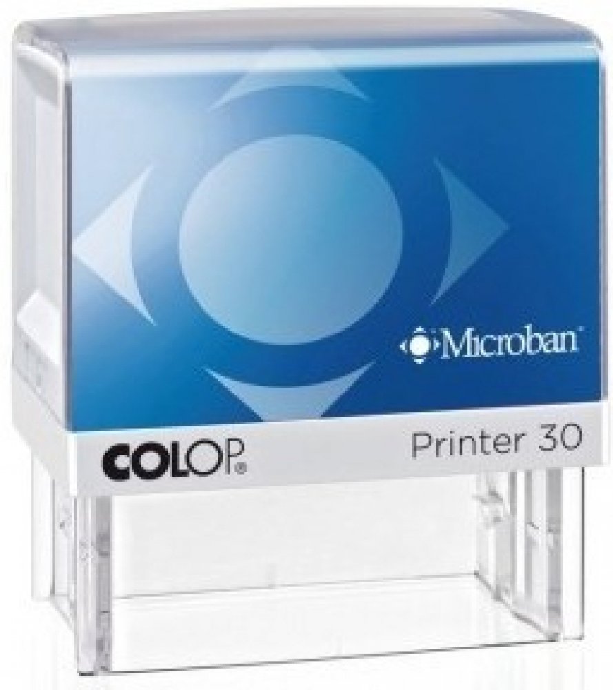 Plastové samobarvící razítko COLOP Printer 30 ANTIBAKTERIÁLNÍ s černým polštářkem a bez štočku, velikost otisku 47x17 mm, barva krytu modrá. Razítka MICROBAN jsou vhodná pro lékaře nebo potravinářského průmyslu. Malé kapesní razítko maximálně 4 řádky tisku pro text i jednoduchou grafiku v různobarevných plastových kombinacích modrá.. Nejčastěji vhodné razítko pro jméno, ulici, město a tel. popř. I...
