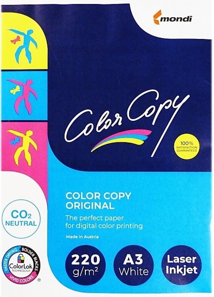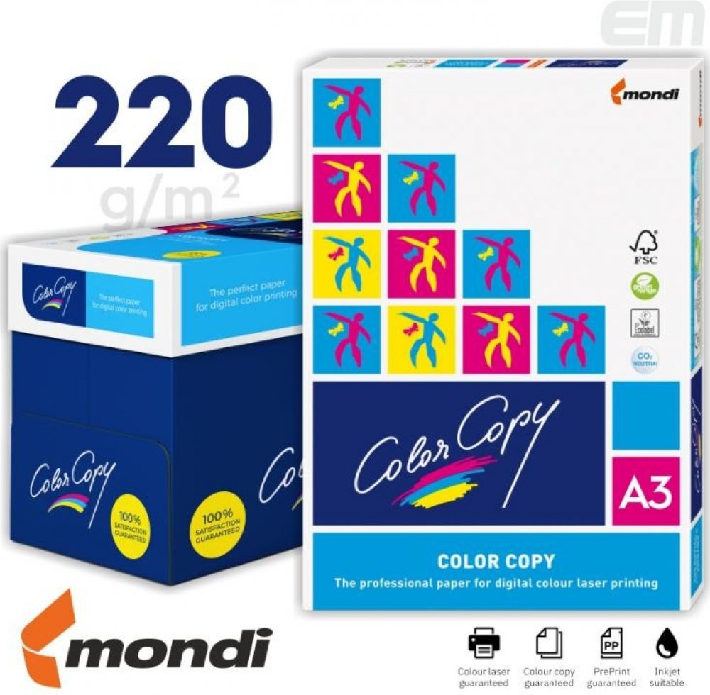 Color Copy je speciální papír pro digitální barevný tisk. Garantujeme Vám originální, brilantní a perfektní tiskové výsledky. Díky Color Copy můžete sami vytvořit velmi profesionální prezentaci pro náročné grafiky, designéry a reklamní agentury. ostré tiskové výsledky, brilantní reprodukce barev díky speciální povrchové úpravě papír je velmi příjemný na dotek.