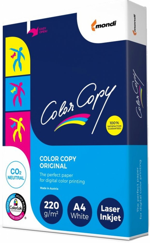 Color Copy je speciální papír pro digitální barevný tisk. Garantujeme Vám originální, brilantní a perfektní tiskové výsledky. Díky Color Copy můžete sami vytvořit velmi profesionální prezentaci pro náročné grafiky, designéry a reklamní agentury. ostré tiskové výsledky, brilantní reprodukce barev díky speciální povrchové úpravě