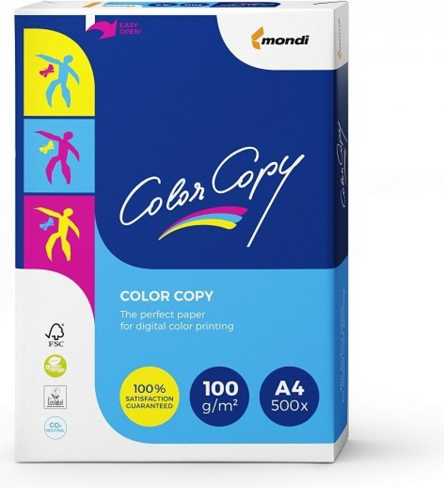 Color Copy je bezdřevý, bílý jakostní papír pro náročné barevné aplikace. Díky svému hlazenému povrchu garantuje reprodukci barev ojedinělé originality a brilantnosti na všech systémech pro barevný laserový tisk a barevné kopírování. Neporazitelný ve své šíři sortimentu - od malého po velký formát představuje Color Copy vždy to správné řešení.U některých papírů s poznámkou s leskem jde o oboustranně natíraný papír s leskem (tzv. křídový).