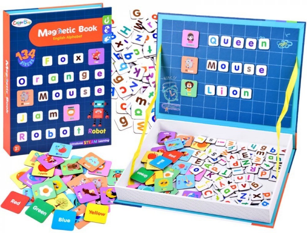 COLOR DAY Magnetická kniha Anglická abecedaMagnetická kniha - tvořivá naučná hračka! Sada se skláda ze 134 prvků, včetně malých a velkých písmen, obrázků se jmény a názvy barev. Kreativní sada je v praktickém balení ve tvaru knihy, vše do ní vejde a dá se snadno přenášet či vzít na výlet nebo na dlouhé cesty. Magnetická kniha pro děti je krásná nadčasová hračka, která se bude líbit několika gener...