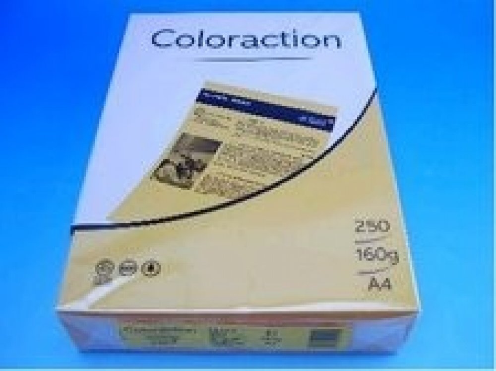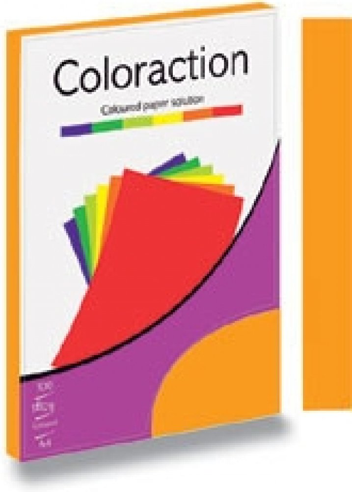 Barevné papíry - čtvrtka barevná. Barevný papír Coloraction v barvě Venézia - sytě oranžové. Tento kvalitní multifunkční kopírovací papír má výbornou potiskovatelnost a vyváženost barevných pigmentů. Papíry Coloraction se vyrábí v širokém množství barevných odstínů. Rozměr: A4 (210 × 297mm) Gramáž papíru: 160g Počet kusů v balení: 250 ks